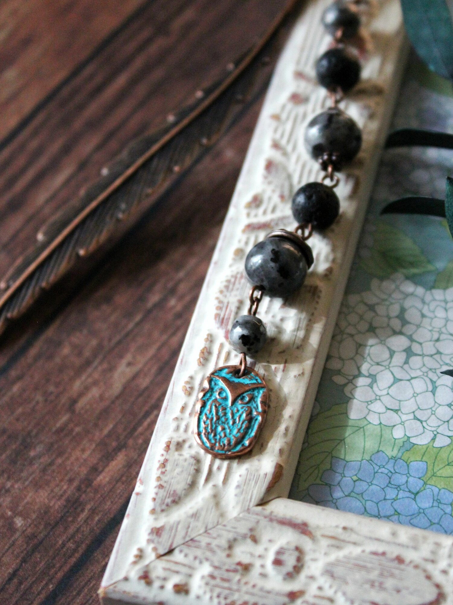 СохранитьЗакладка художественная ручной работы "Тайна Совы" с ларвикитом, для книги ежедневника дневника, готовый подарок интересное: