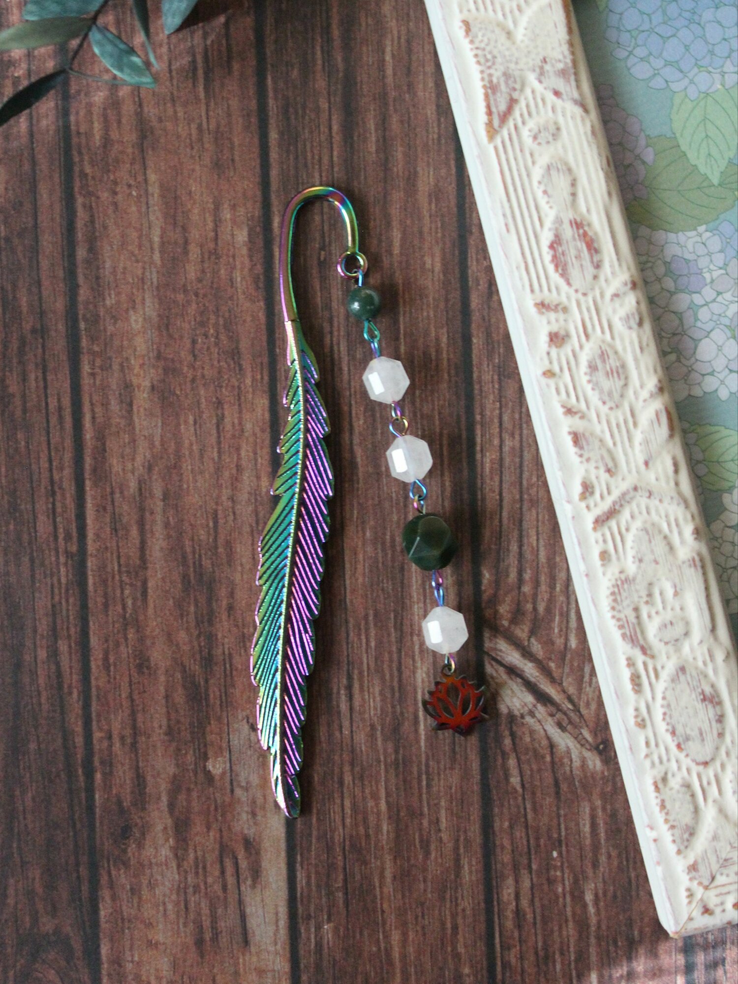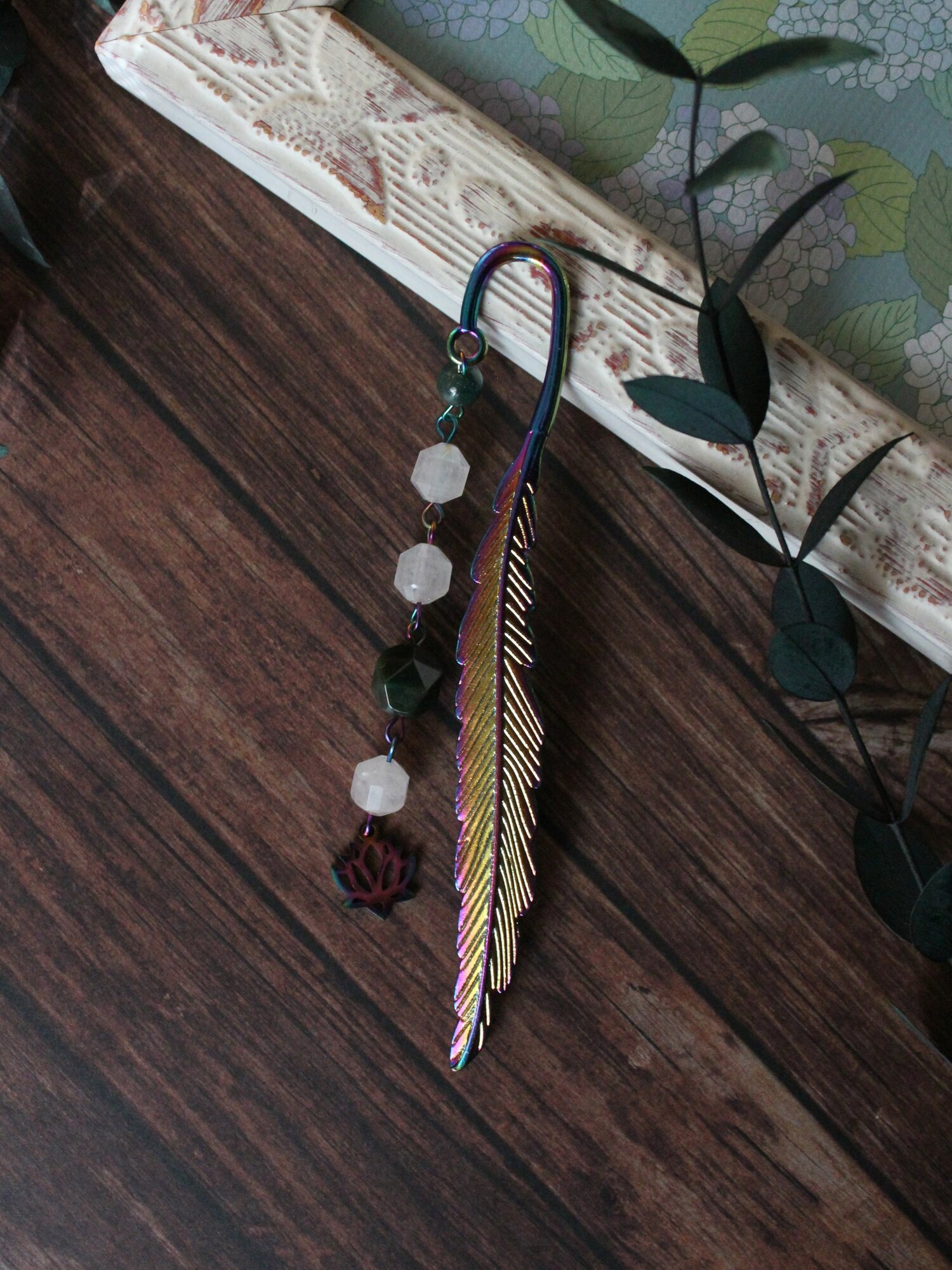 Купить Закладка-перо "Перо феникса" радужная (11,5 см) с художественной подвеской, для книги ежедневника дневника, натуральные минералы, готовый подарок