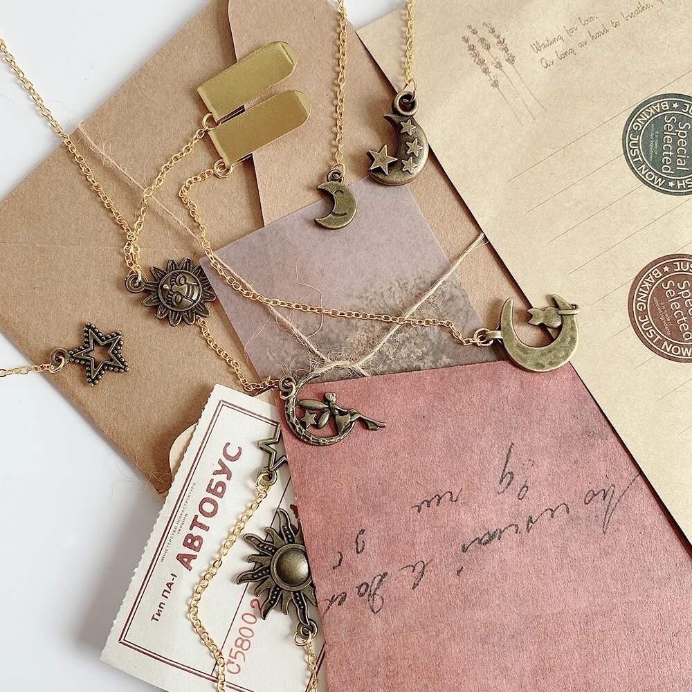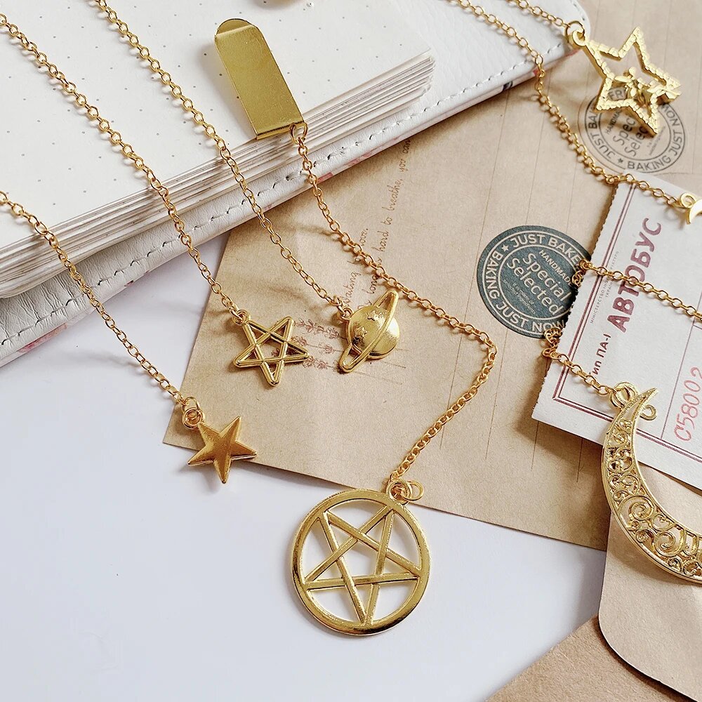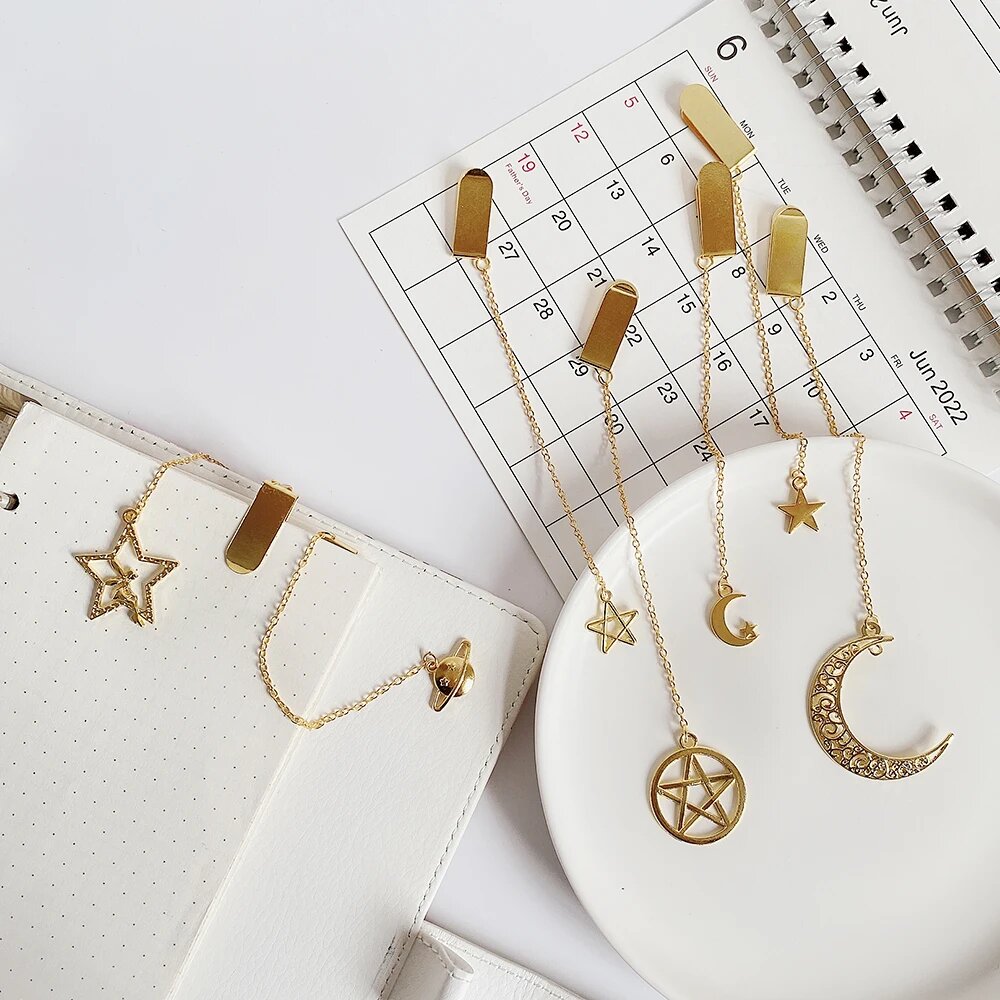 Купить Металлические закладки звезды солнце луна 5 шт ALLTU, bronze in random