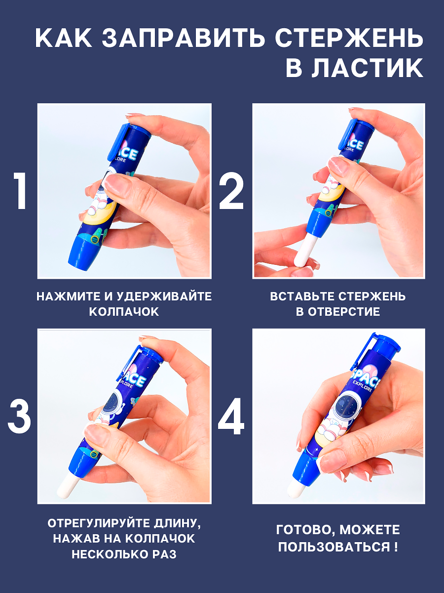 Купить Ластик школьный выдвижной стерка, космонавт