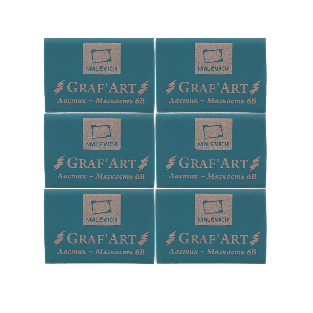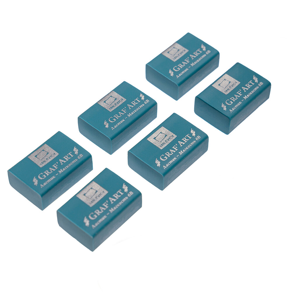 Купить Ластик экстра мягкий 6В Малевичъ, стерка, сизый прямоугольный, набор 6 шт