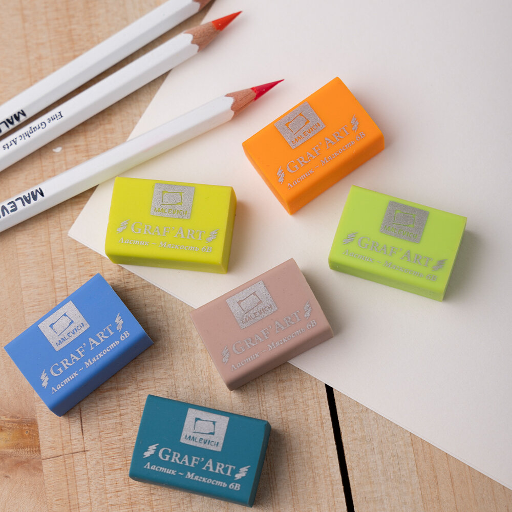 Ластик экстра мягкий 6В Малевичъ, цвет лайм, набор ластиков 6 шт