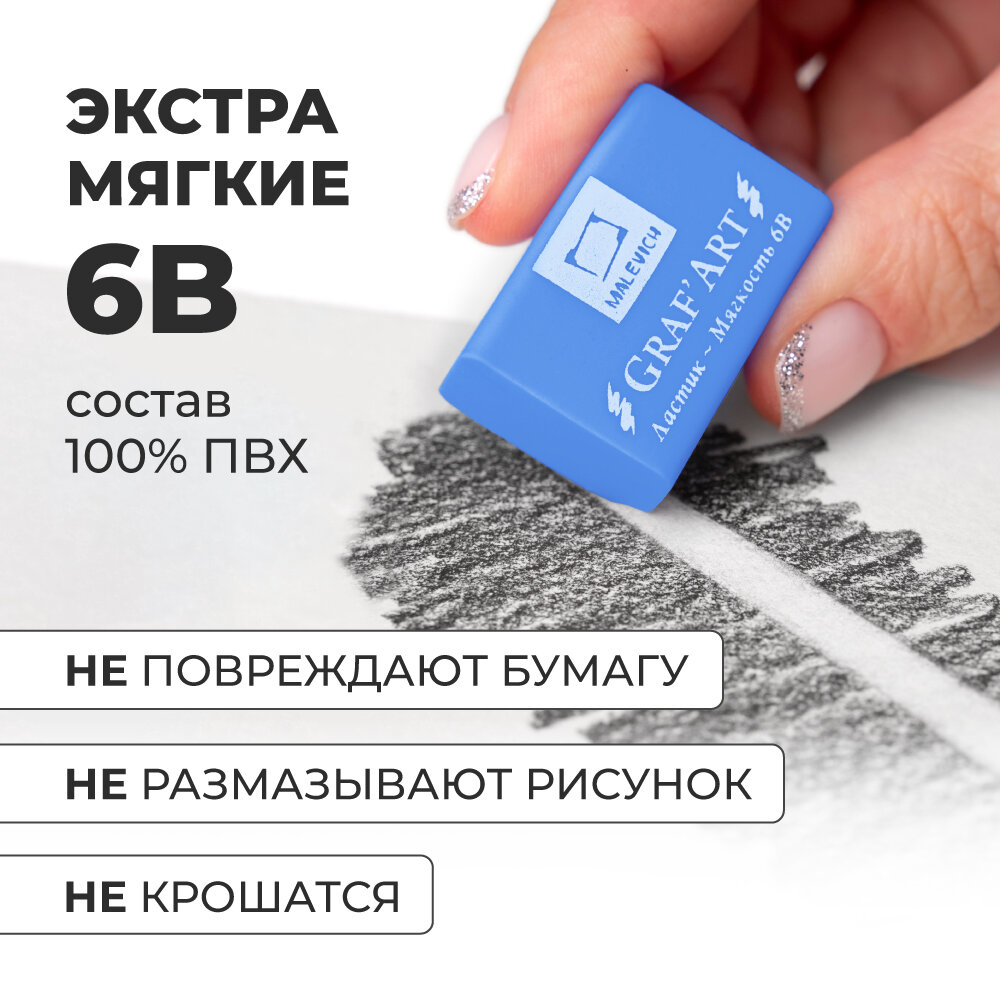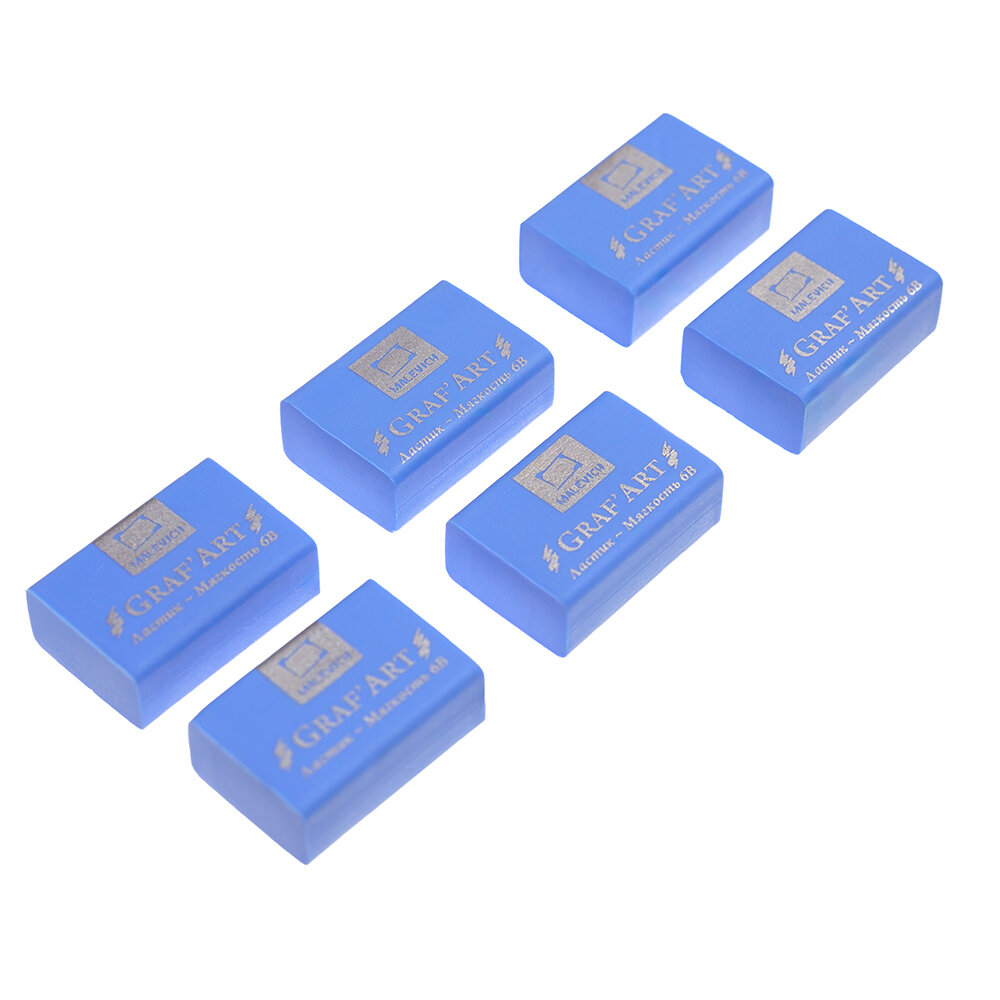 Ластик экстра мягкий 6В Малевичъ, стерка, сизый прямоугольный, набор 6 шт