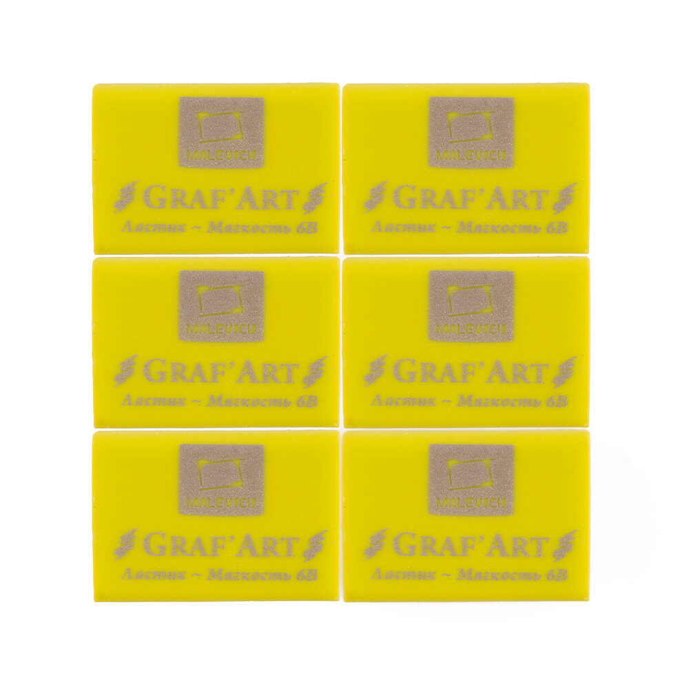 Ластик экстра мягкий 6В Малевичъ, стерка, сизый прямоугольный, набор 6 шт