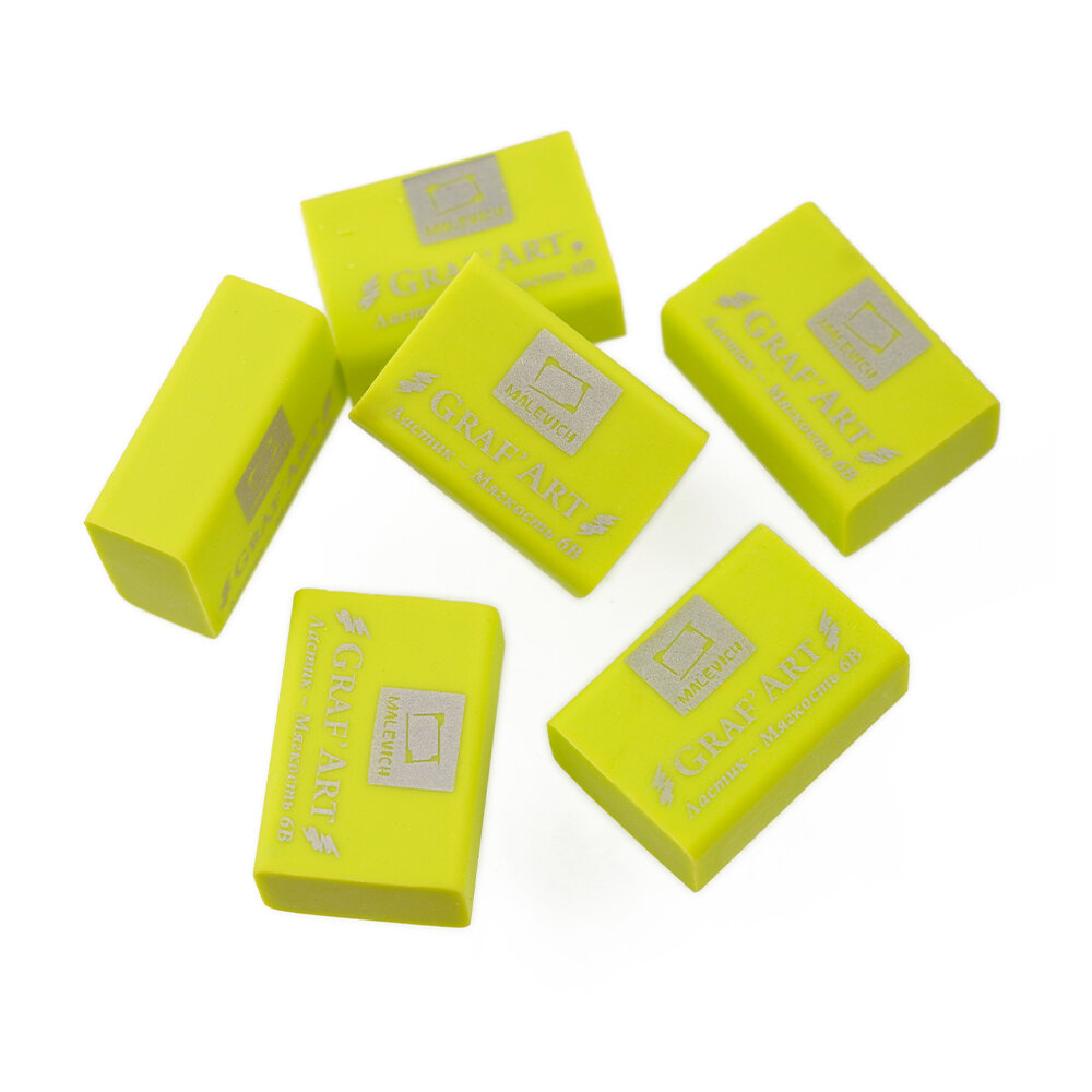 Ластик экстра мягкий 6В Малевичъ, цвет лайм, набор ластиков 6 шт