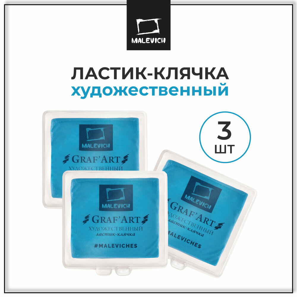 Клячка Малевичъ в пластиковом футляре, набор ластиков-клячек 3 шт голубые интересное: