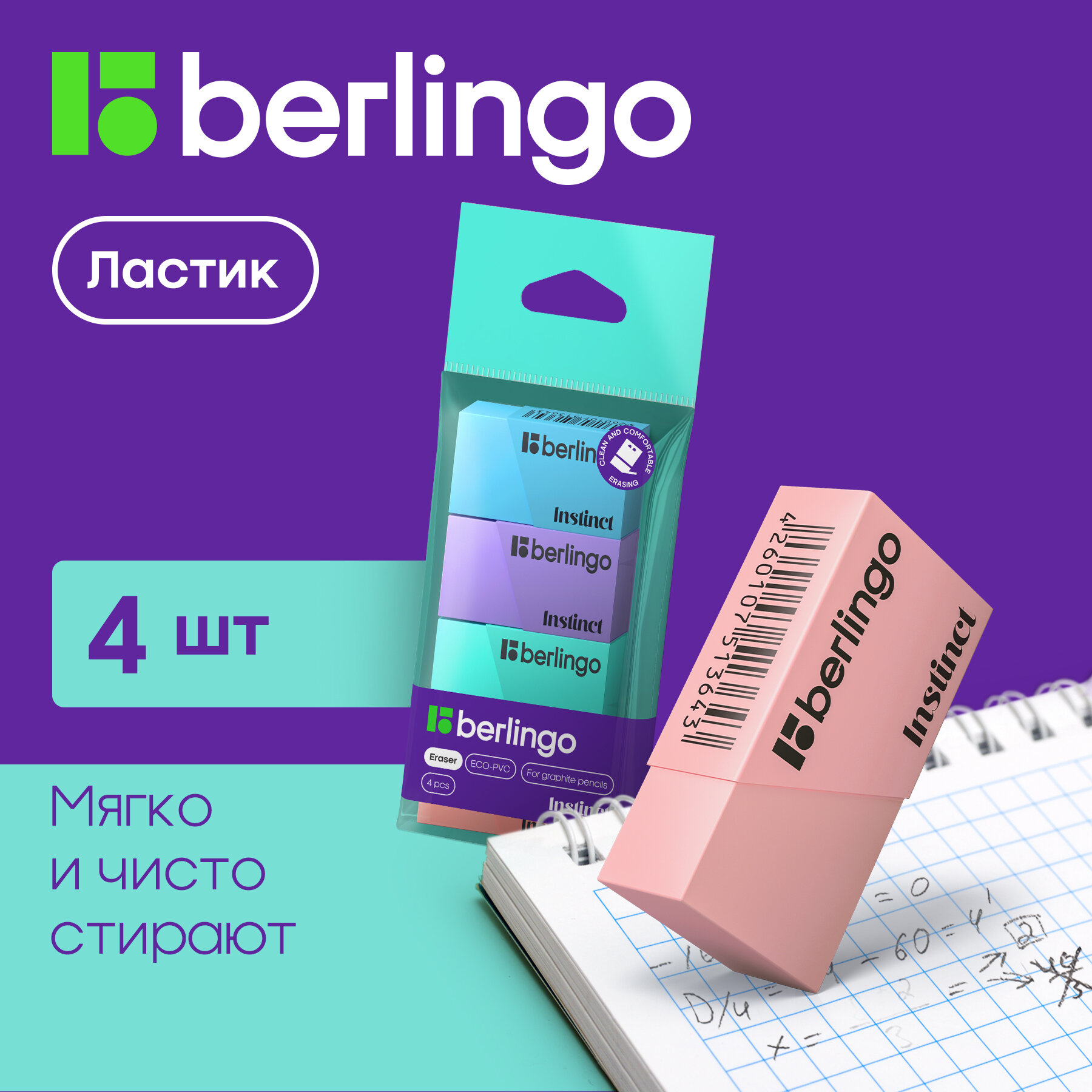 Ластик Berlingo "Instinct", 4шт, прямоугольные, термопласт. резина, 40*20*10мм интересное: