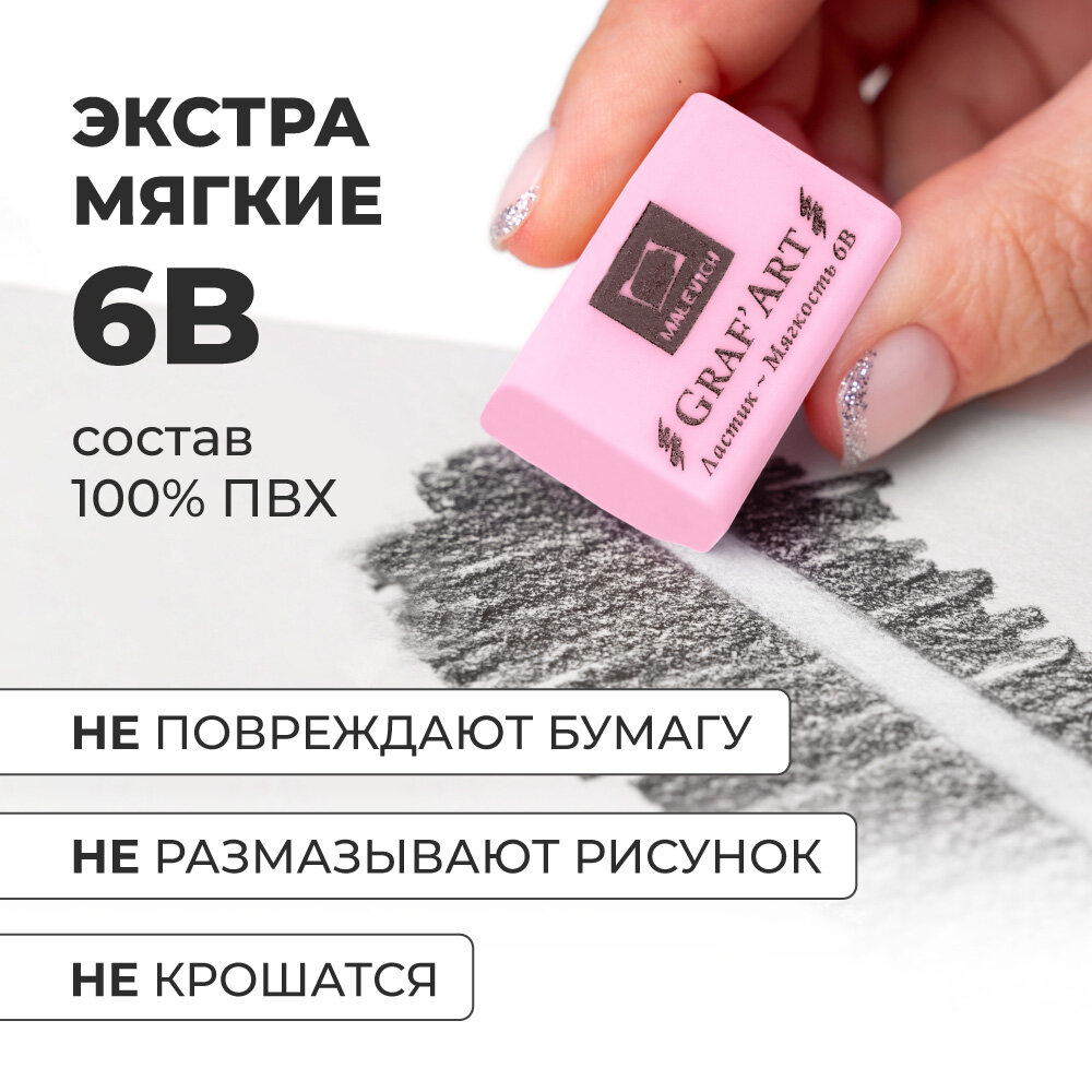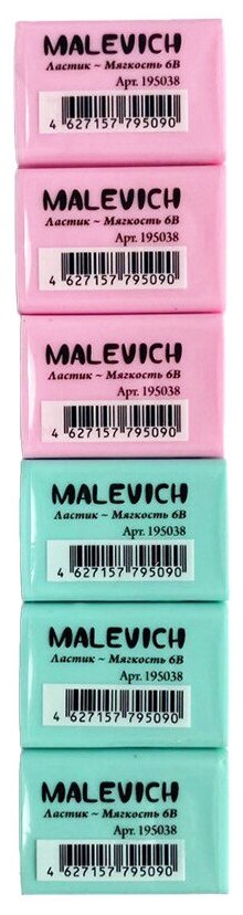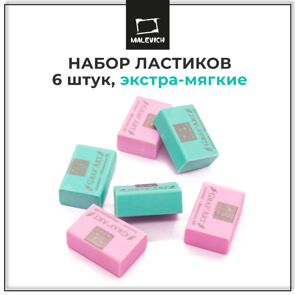 Ластик Малевичъ экстра мягкий 6В, набор ластиков цветных 6 шт интересное: