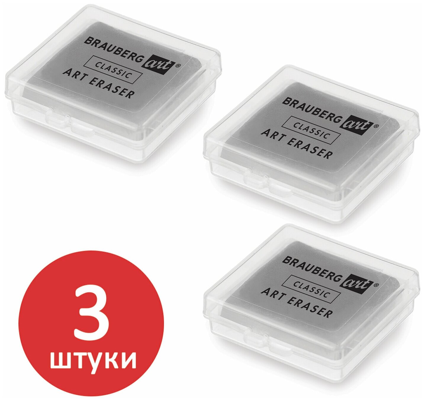 Ластик-клячка / ластик художественный в футляре, Комплект 3 штуки, серые, Brauberg Art Classic, 40x36x10мм, 880766 интересное:
