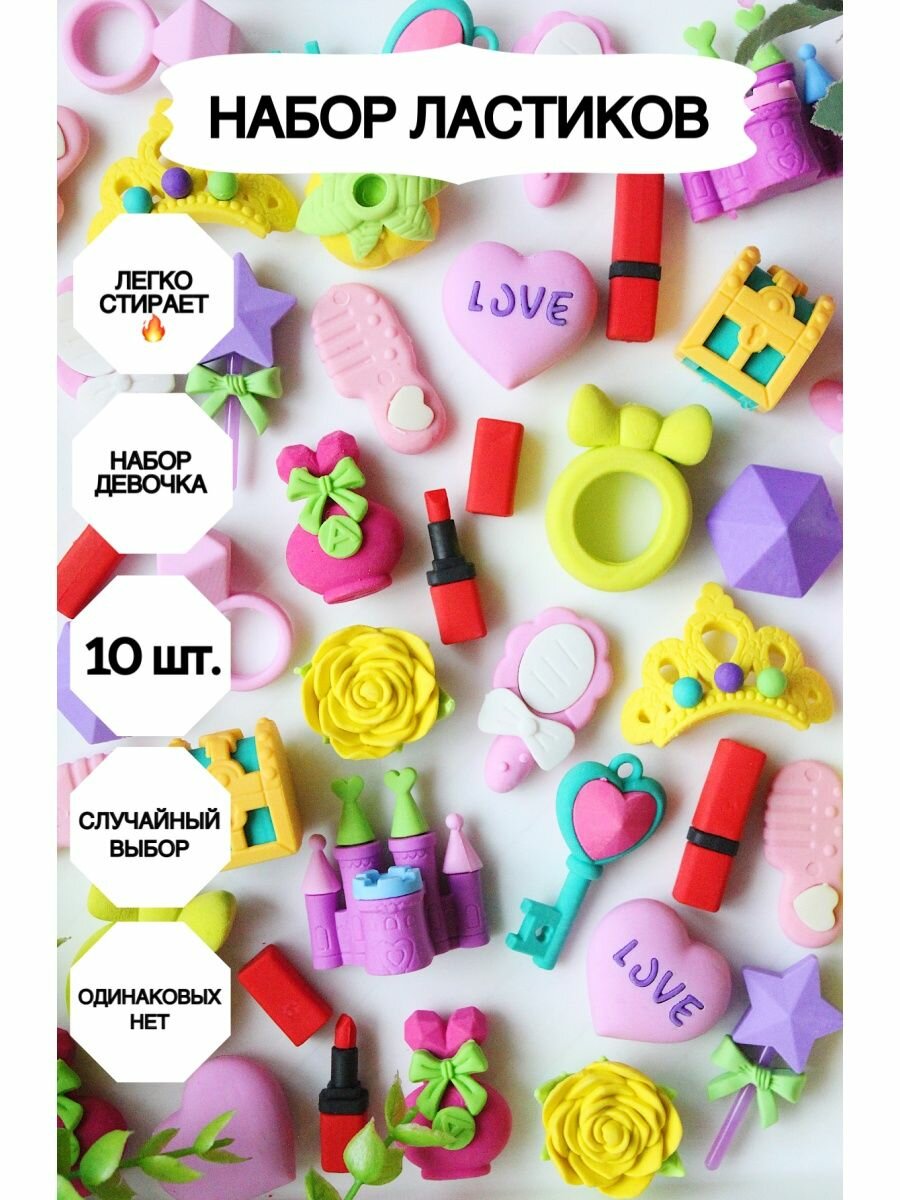 СохранитьНабор ластиков Market13Salnik "Девочка", 10шт, фигурные, классические, мягкий розовый цвет интересное: