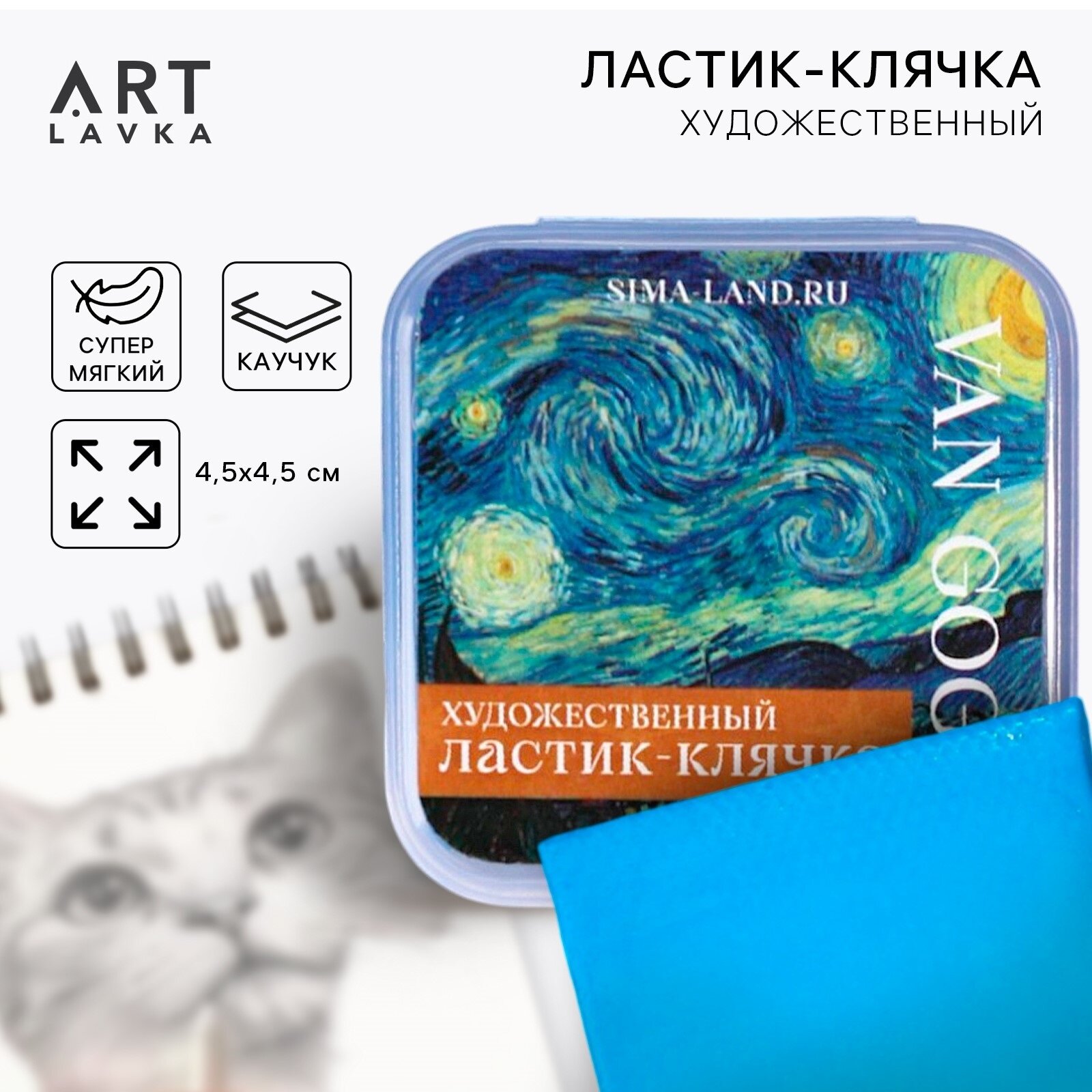 Ластик клячка художественный "Ван Гог", каучук, голубой, для рисования интересное: