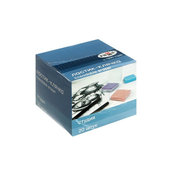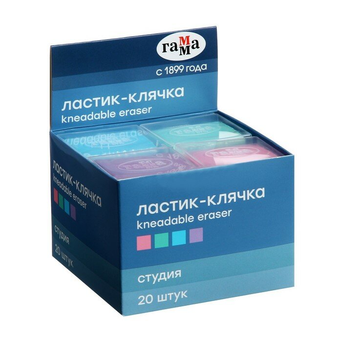 Комплект 20 шт, Ластик-клячка Гамма "Студия", 40*35*10мм, ассорти пастельные цвета, пластик. контейнер