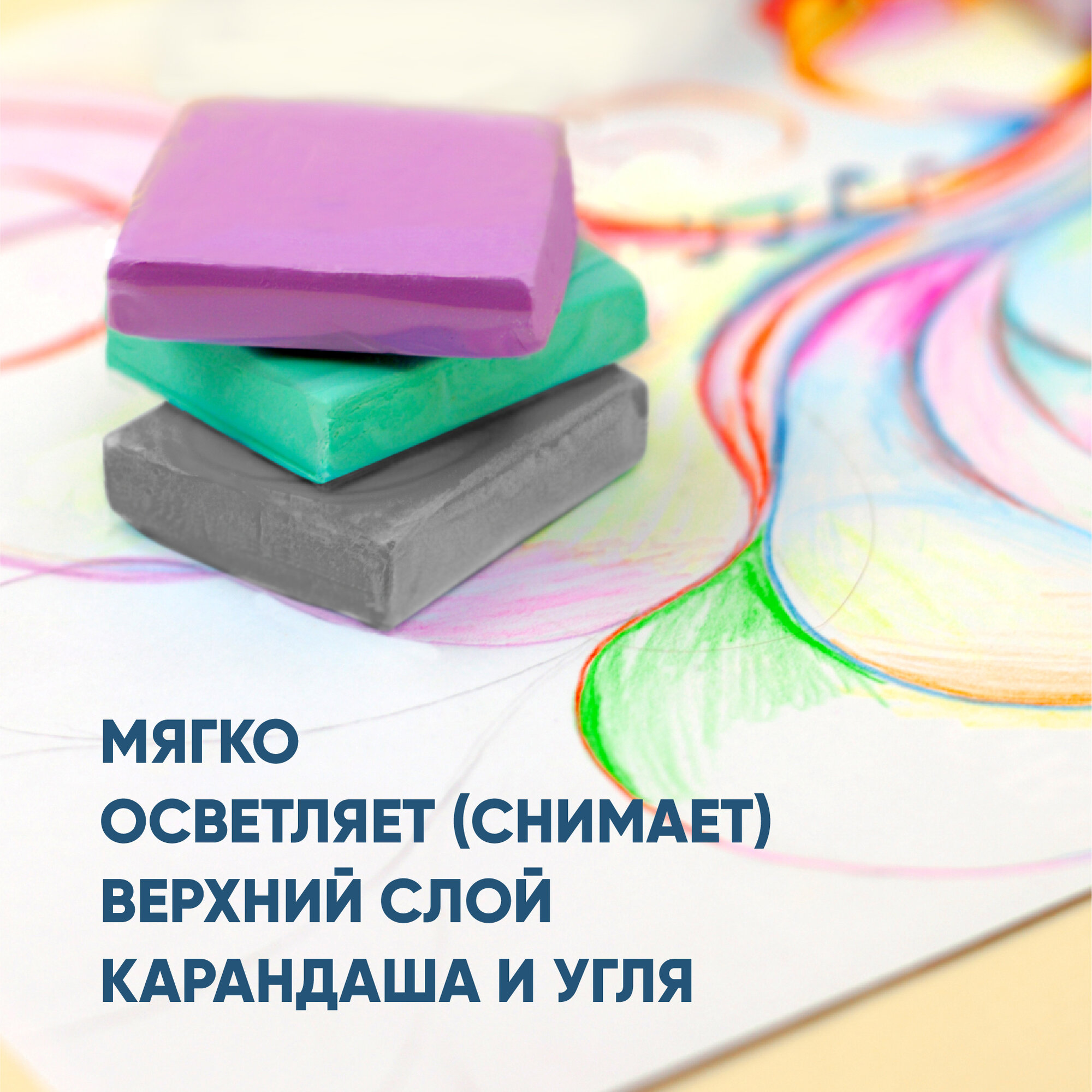 Ластик-клячка Гамма "Студия", 40*35*10мм, серый, зеленый, фиолетовый, 3шт, пластик. контейнер, карт. упак. интересное: