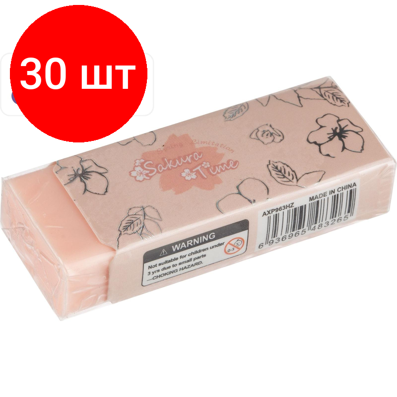 Комплект 30 штук, Ластик прямоугольный M&G Sakura, 45x20x11мм, термопласт каучук, в ассорт интересное: