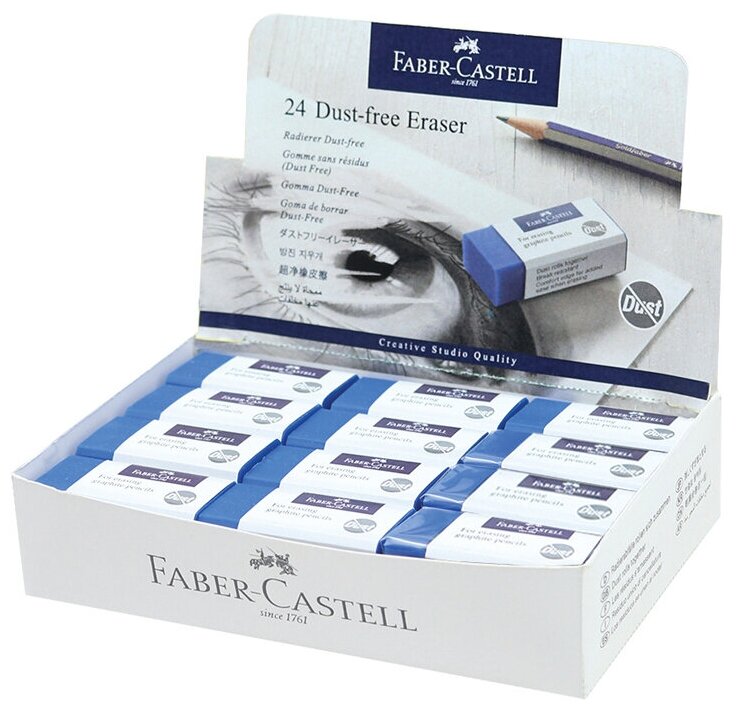 СохранитьКомплект 24 шт, Ластик Faber-Castell "Dust-Free", прямоугольный, картонный футляр, 45*22*13мм, синий интересное:
