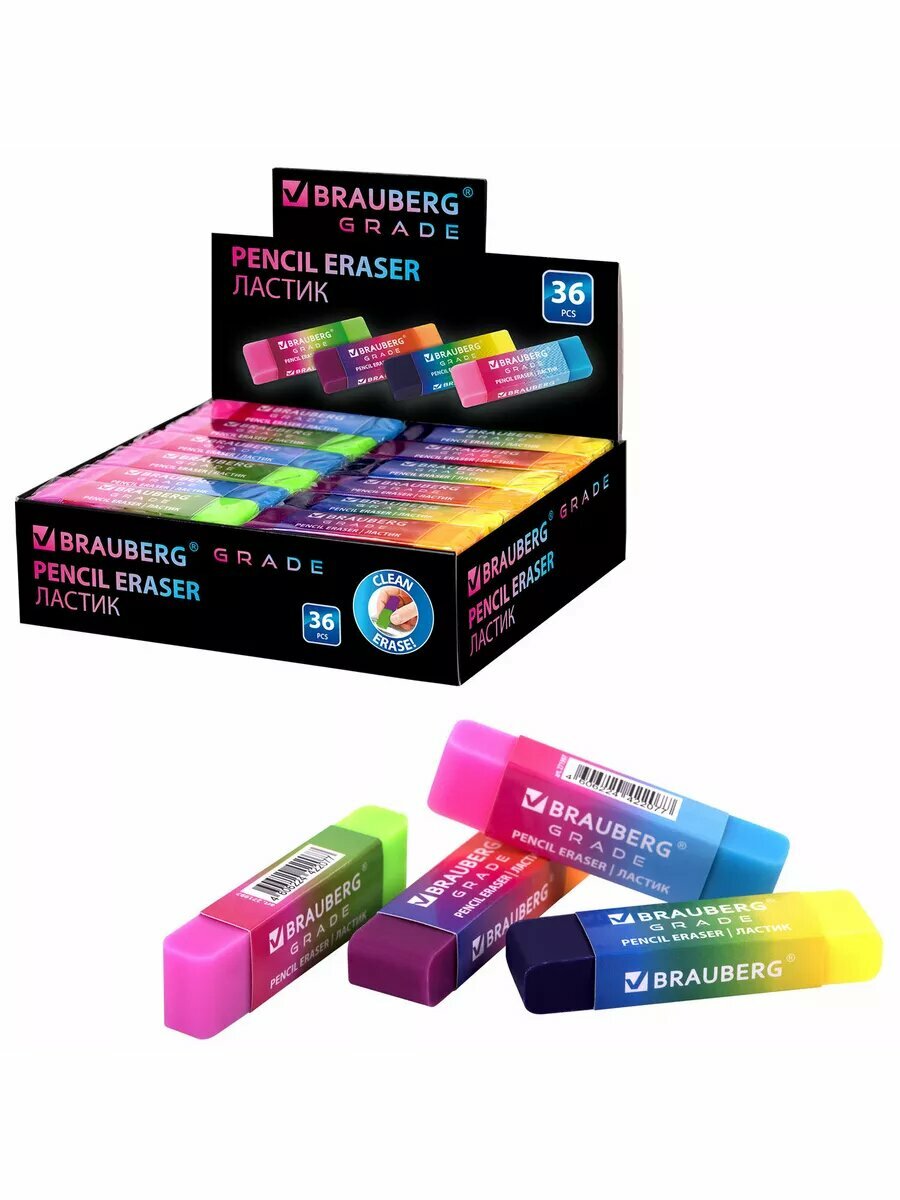 Ниже Вы можете прочитать отзывы на Ластик школьный BRAUBERG Grade, цвет ассорти, картонный держатель, 60х15х10 мм, 2 штуки, ознакомится с подробными характеристиками, посмотреть интересные обзоры и фотографии на Ластик школьный BRAUBERG Grade, цвет ассорти, картонный держатель, 60х15х10 мм, 2 штуки.