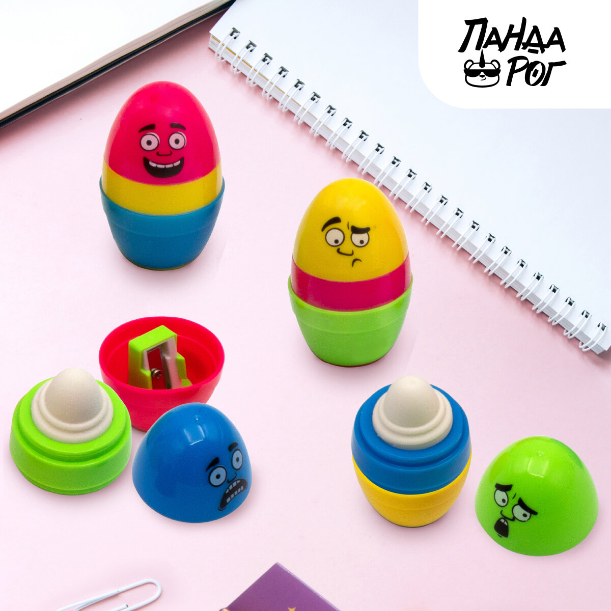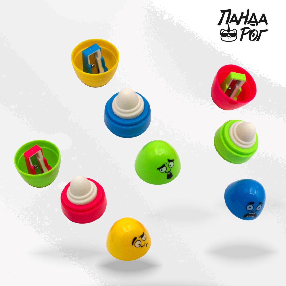 Ластик в овальном корпусе с точилкой 60х40 мм, термопластичная резина, набор 4 цвета, пандарог интересное: