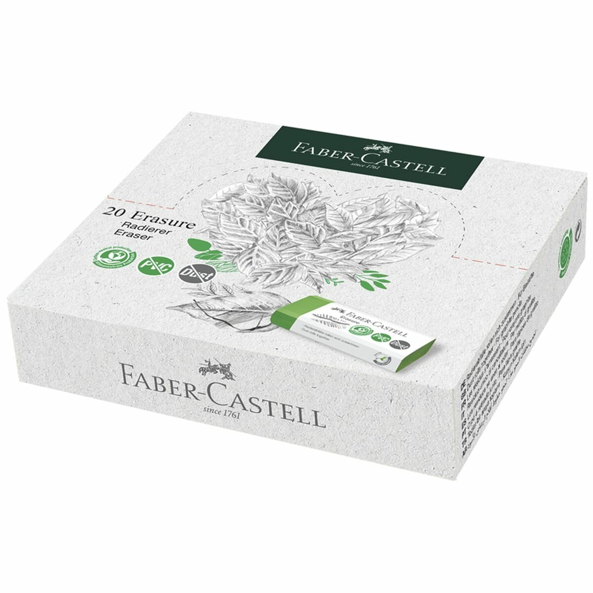 Купить Ластик Faber-Castell Erasure PVC-Free & Dust-Free, прямоугольный, картонный футляр, 63x22x13мм (187250)