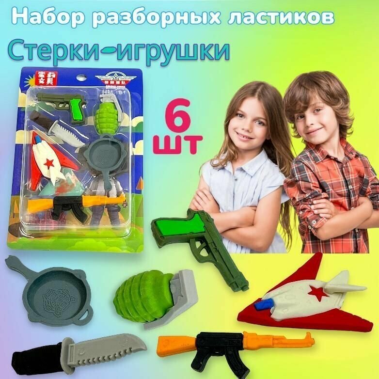 Ластик/резинка стирательная / стерки-игрушки для детей, упаковка 6 шт интересное: