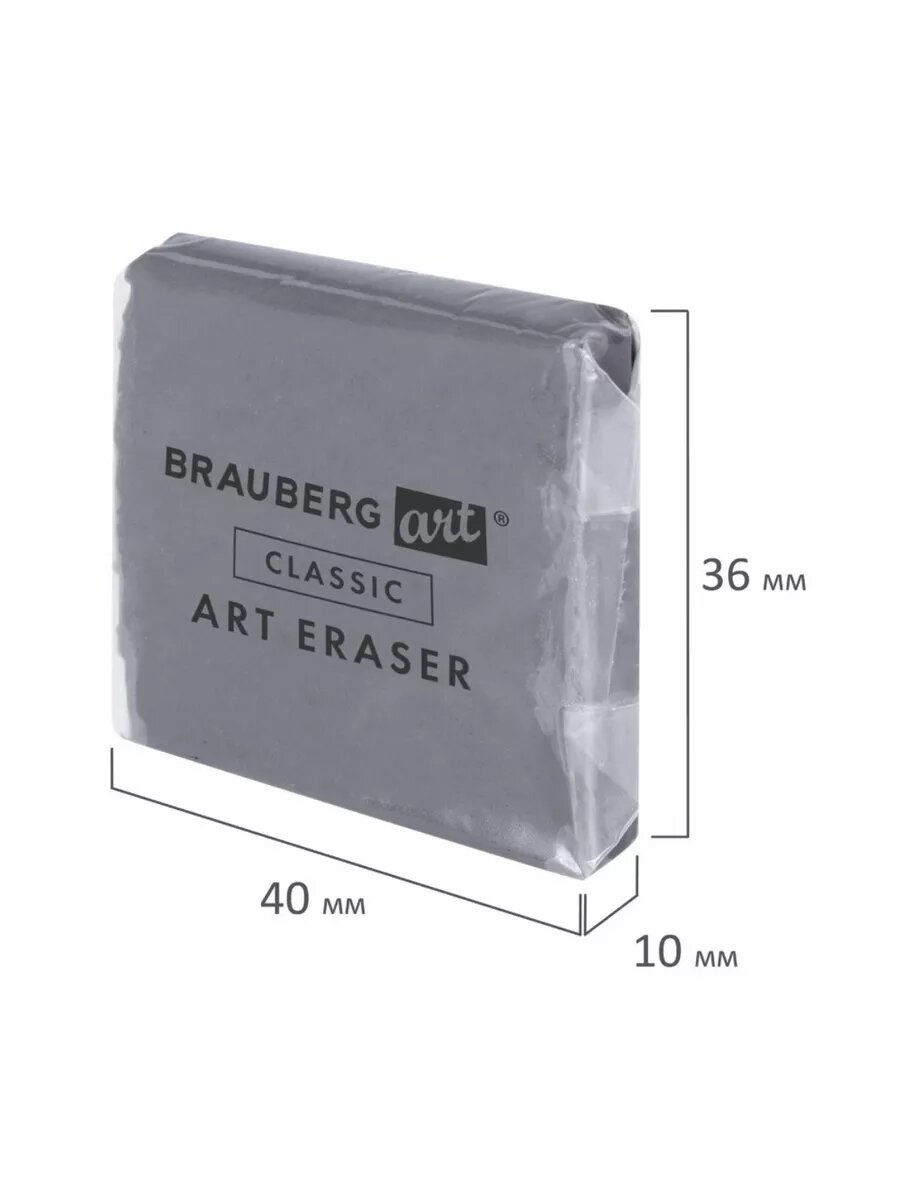 Ластик-клячка Brauberg Art "Classic" 40*36*10 мм, супермягкий, серый, натуральный каучук (228064)