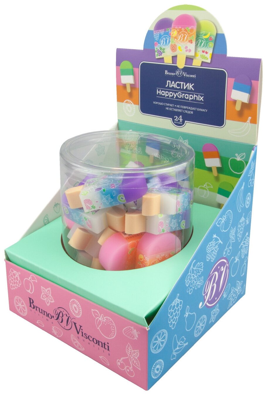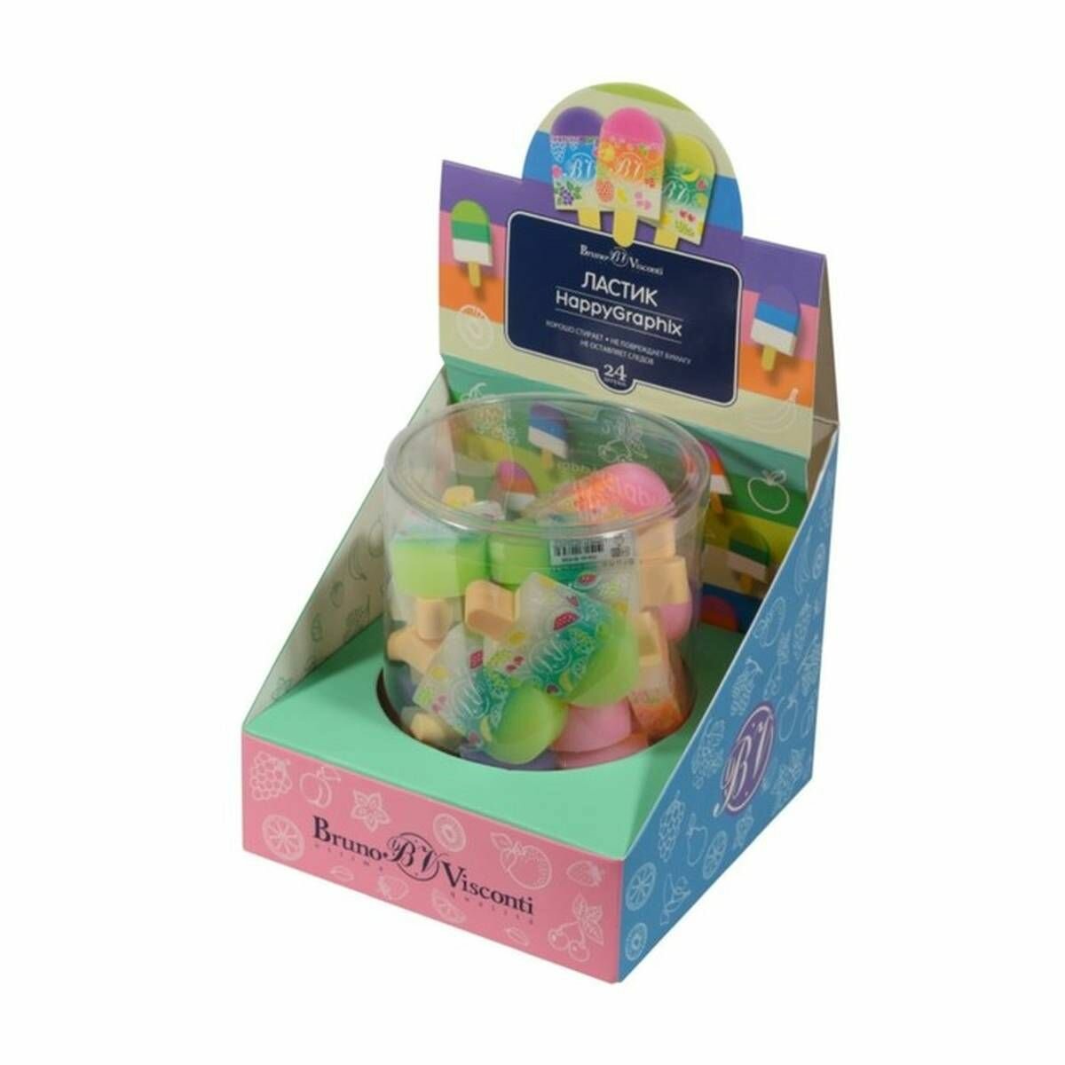 Ластик BrunoVisconti, 3 цвета, HappyGraphix «фруктовое мороженое», Арт. 42-0028 интересное: