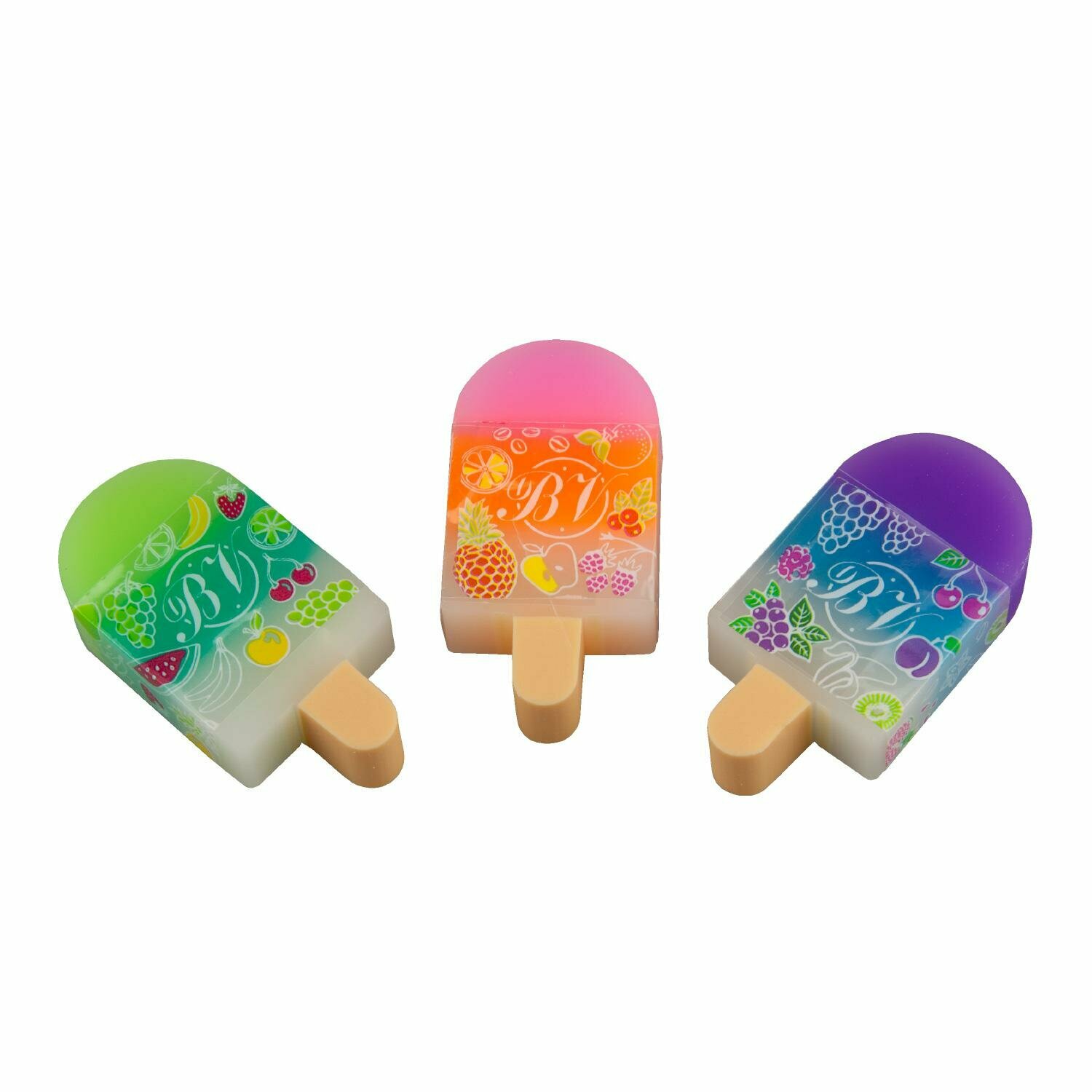 Купить Ластик BrunoVisconti, 3 цвета, HappyGraphix «фруктовое мороженое», Арт. 42-0028