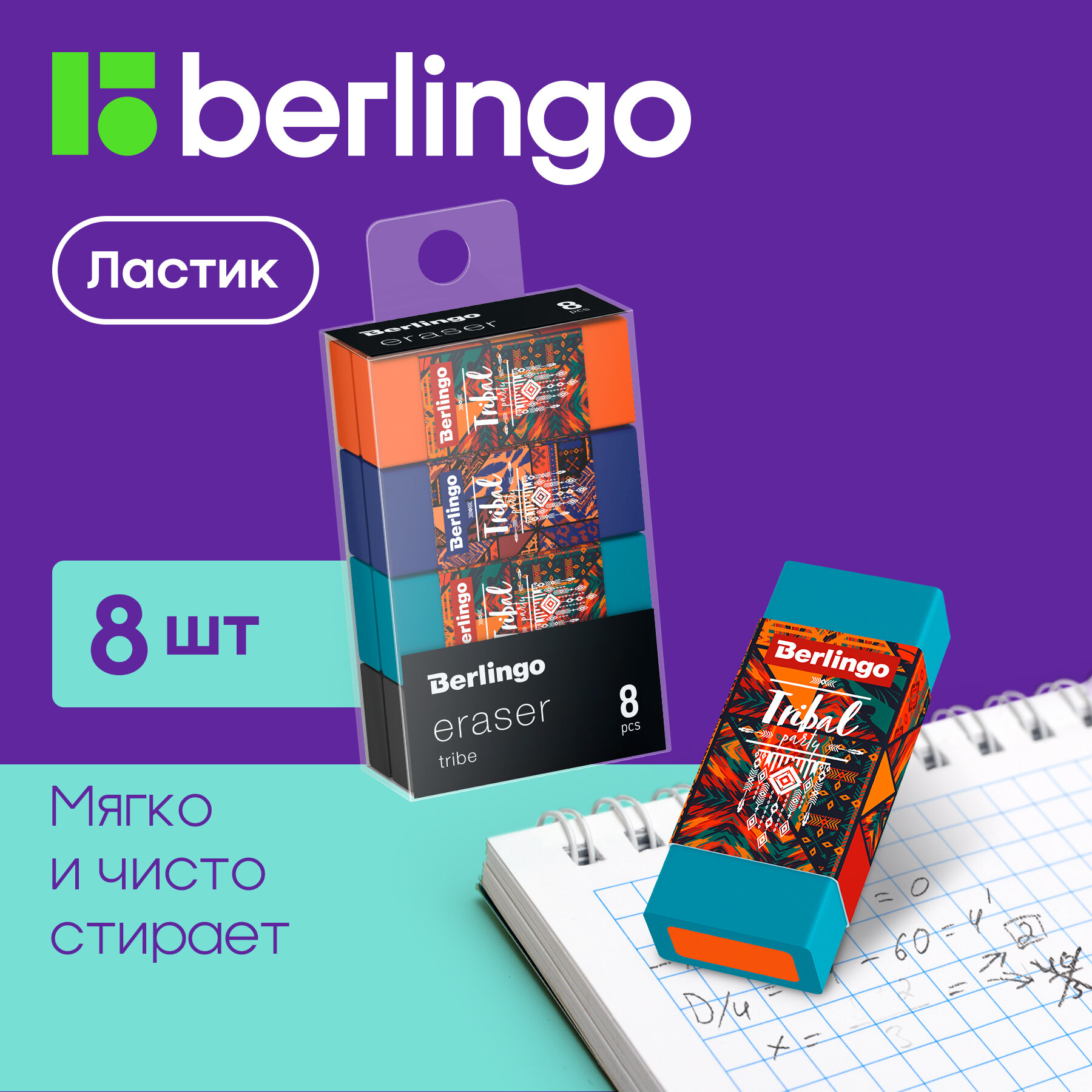 Купить Ластик Berlingo "Tribe", 8шт, прямоугольный, 50*20*11мм бокс