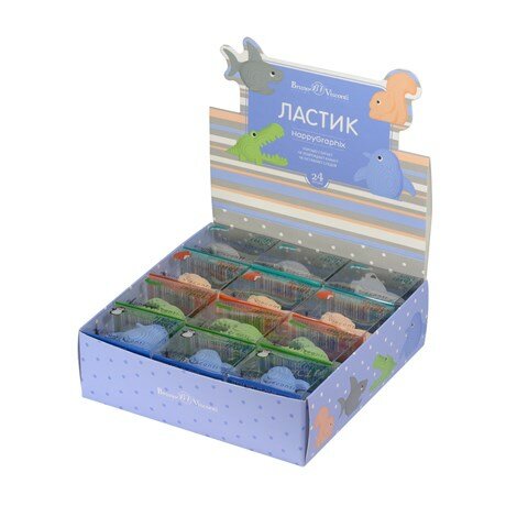 Ластик BrunoVisconti, 4 цвета, HappyGraphix «прикольные зверушки», Арт. 42-0047 интересное: