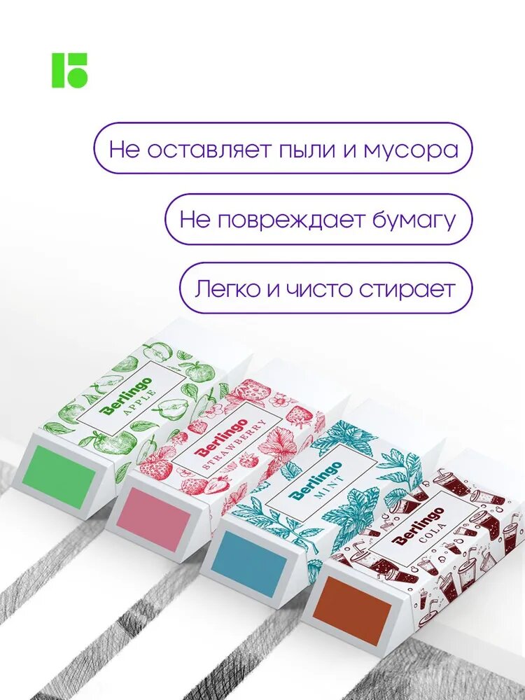 Ластики для школы Berlingo Aroma стирательная резинка канцелярская, стерка для карандаша с запахом, набор 4 шт, 58х22х20 мм интересное: