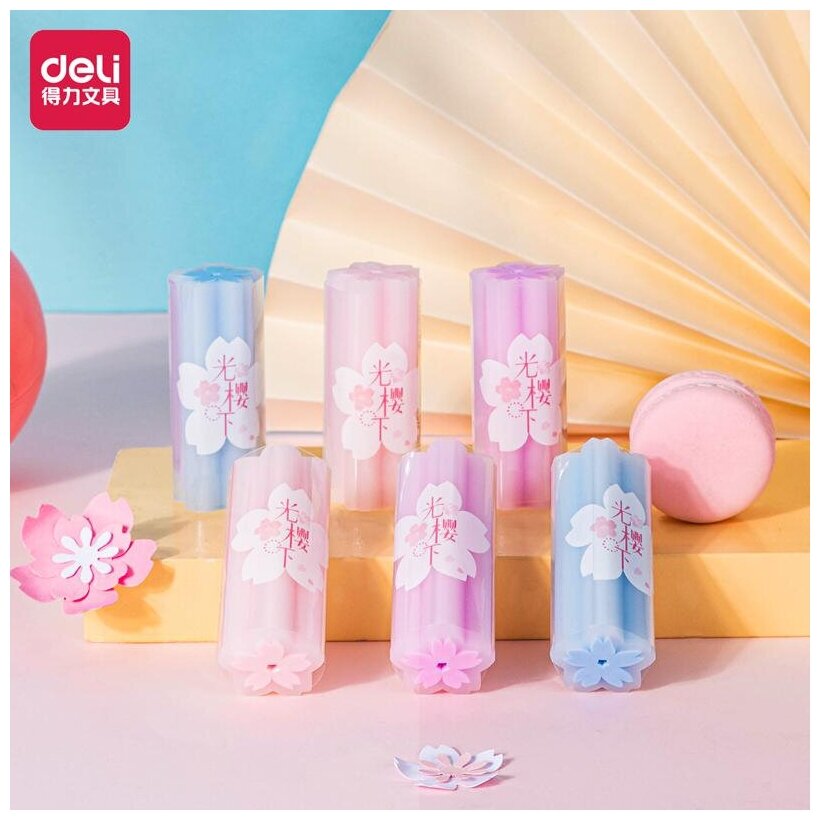 Комплект 7 штук, Ластик Deli Sakura 71136 22х22х55 мм эко ПВХ ассорти интересное: