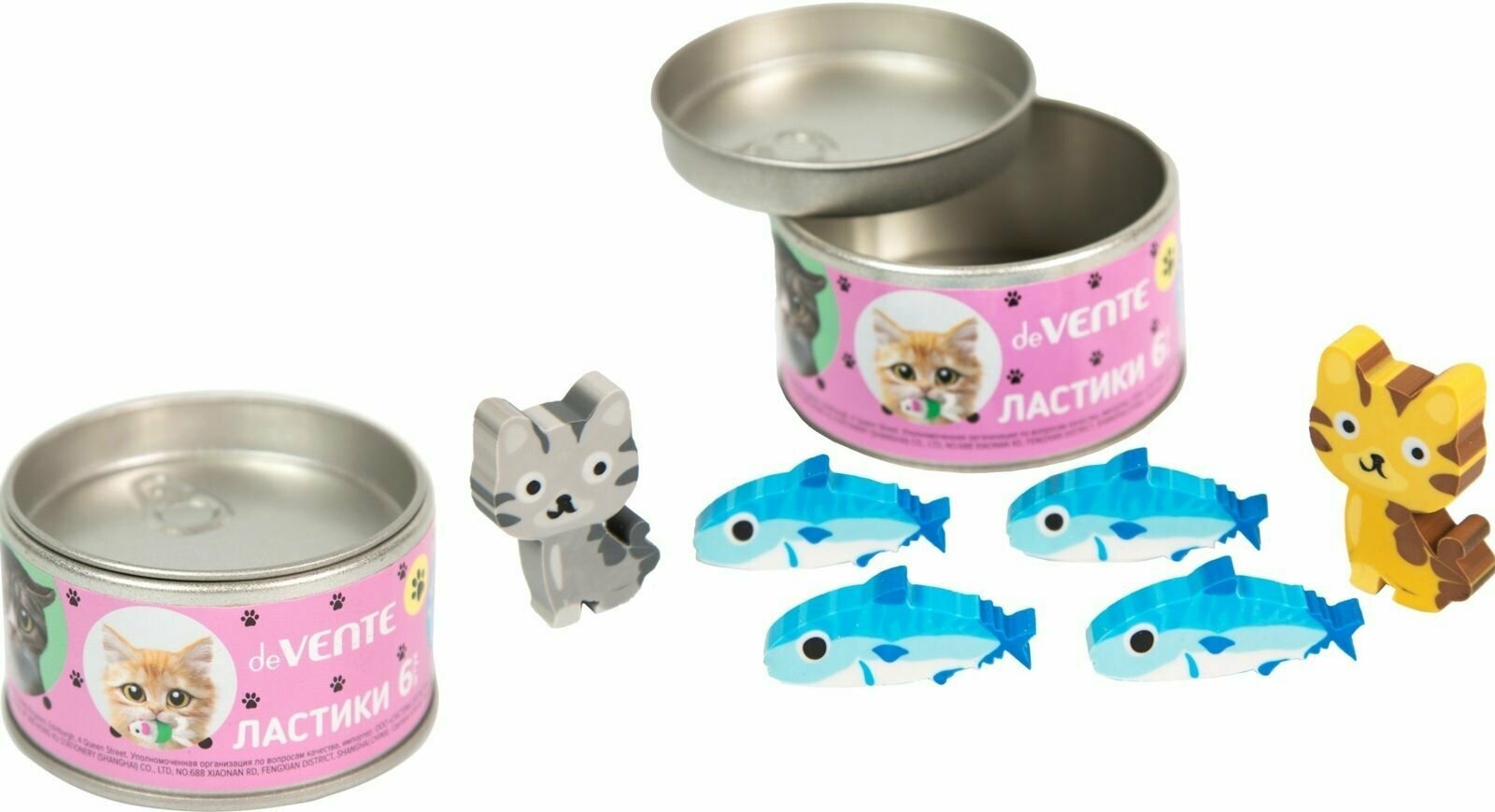 Набор ластиков deVente "Need More Cats", 6 штук, фигурный, ассорти, синтетический каучук, жестяная банка интересное: