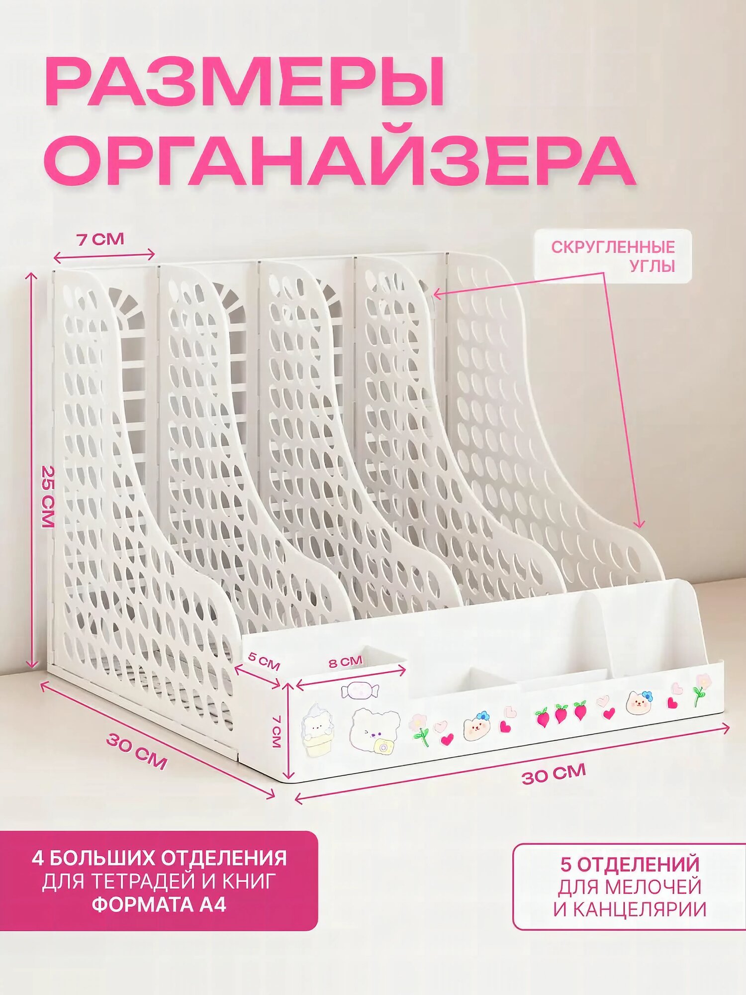 Органайзер для канцелярии и учебников с подставкой для книг 10 отделений интересное: