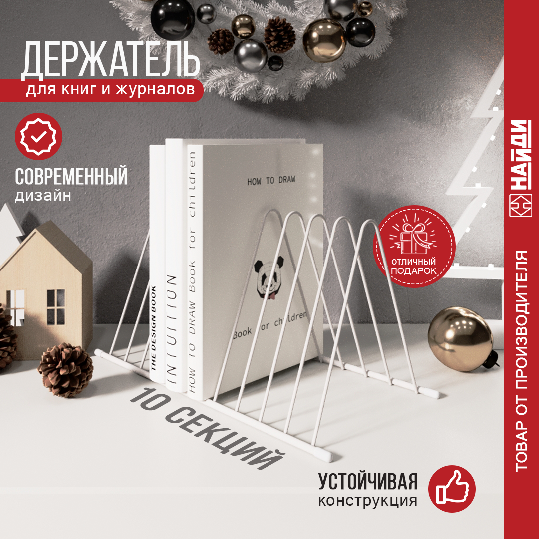 Подставка для книг найди, белый муар, металлическая, 34x16x17.7 см интересное: