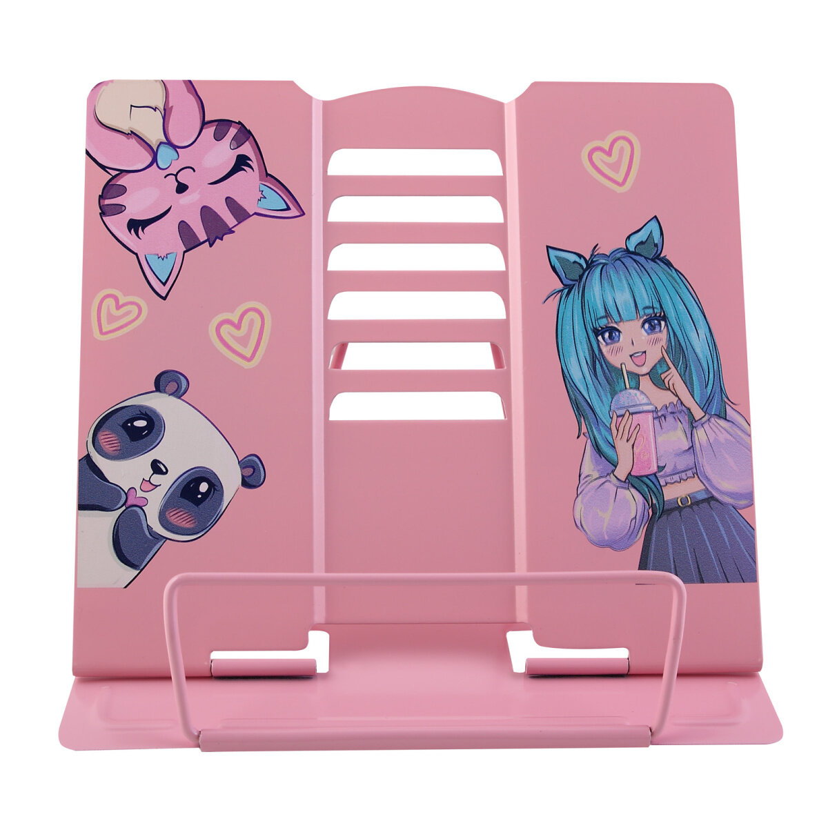 Купить Металлическая подставка для книг "Аниме девочка", розовая, 190x200мм