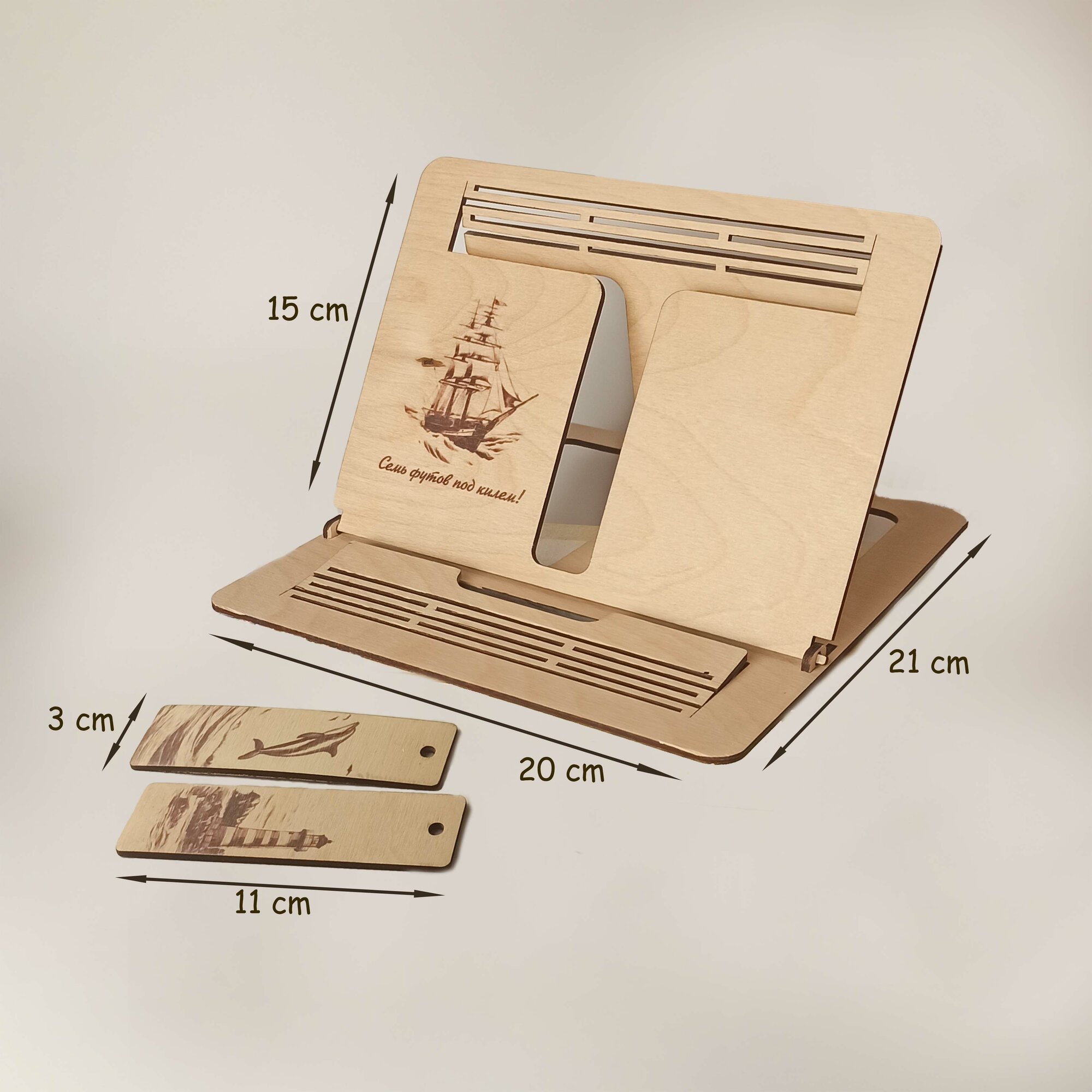 Подставка для книг с двумя закладками, дерево, складная конструкция, бежевый, 21 см x 21 см интересное: