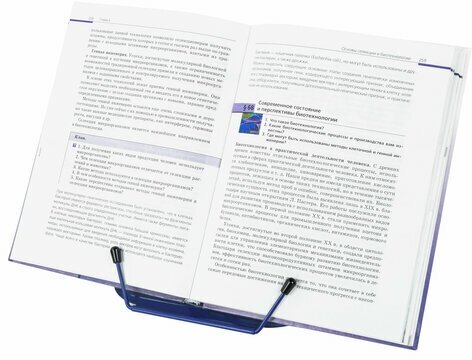 Подставка для книг, учебников, журналов настольная школьная Brauberg Line+, металлическая, синяя, европодвес, 238071