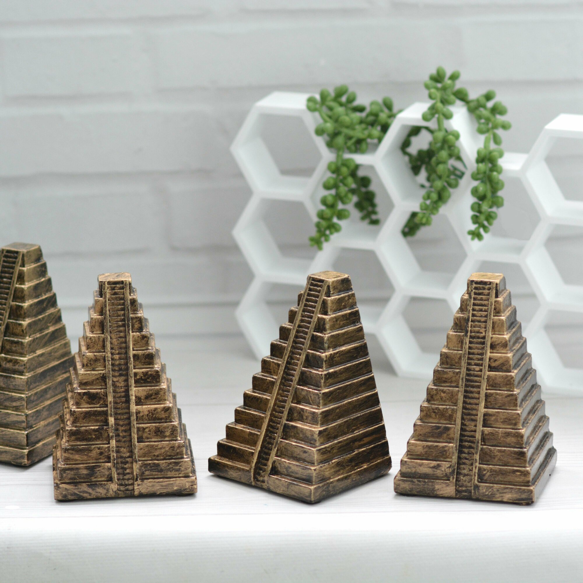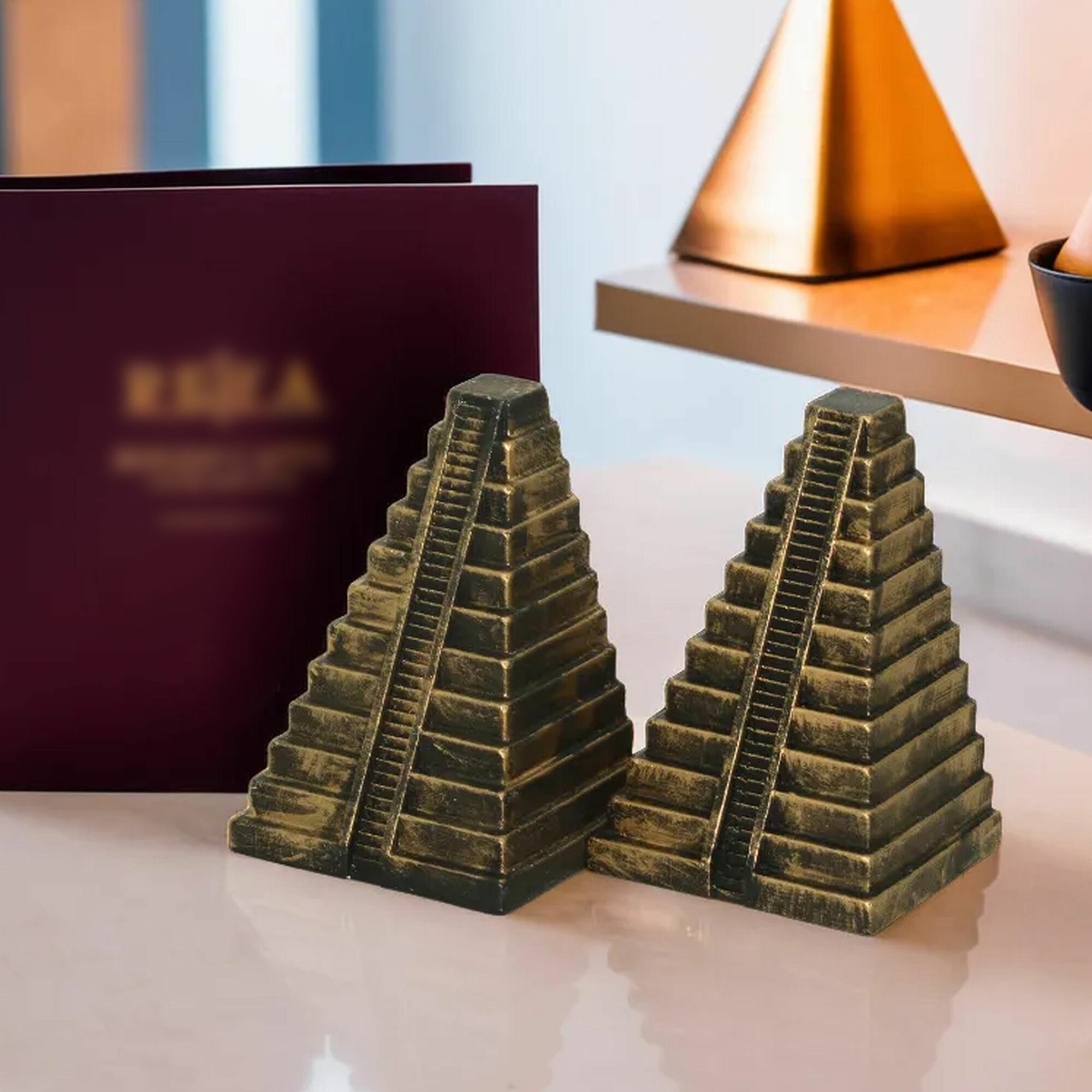 Купить Ограничители для книг Пирамиды, 2шт // Держатели-подставки на полку // Цвет Черное золото
