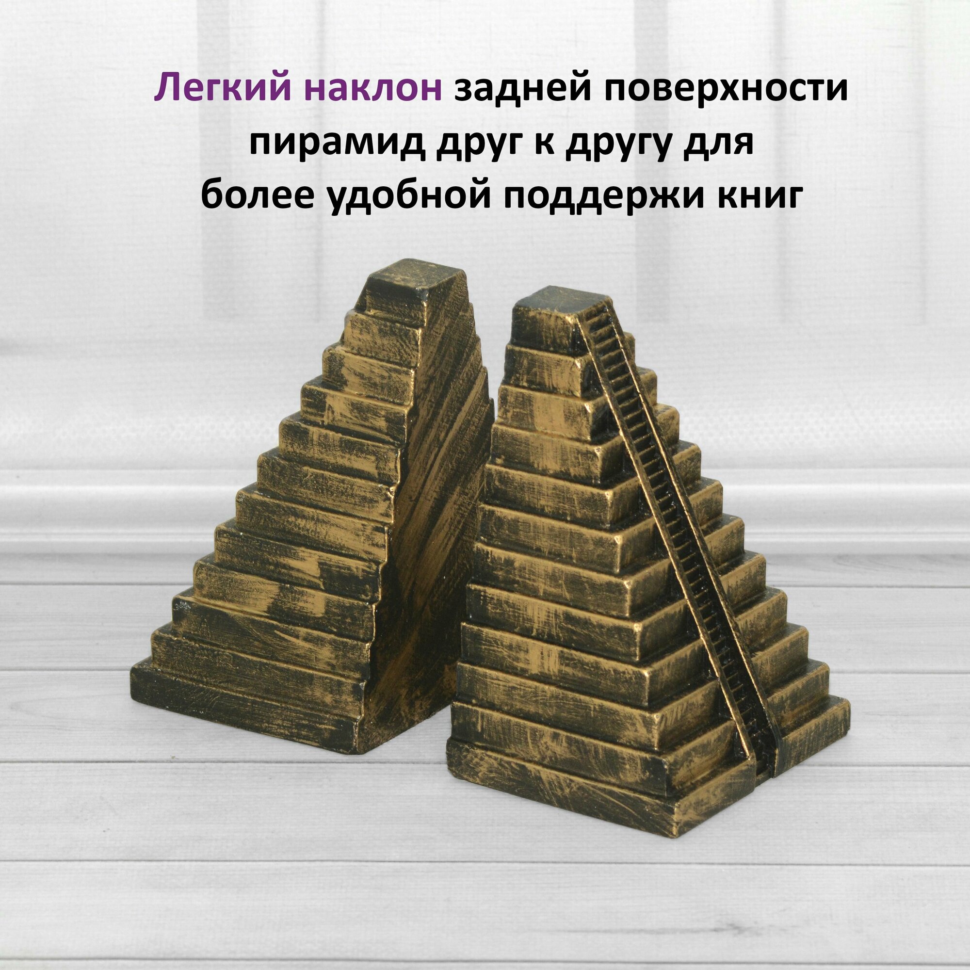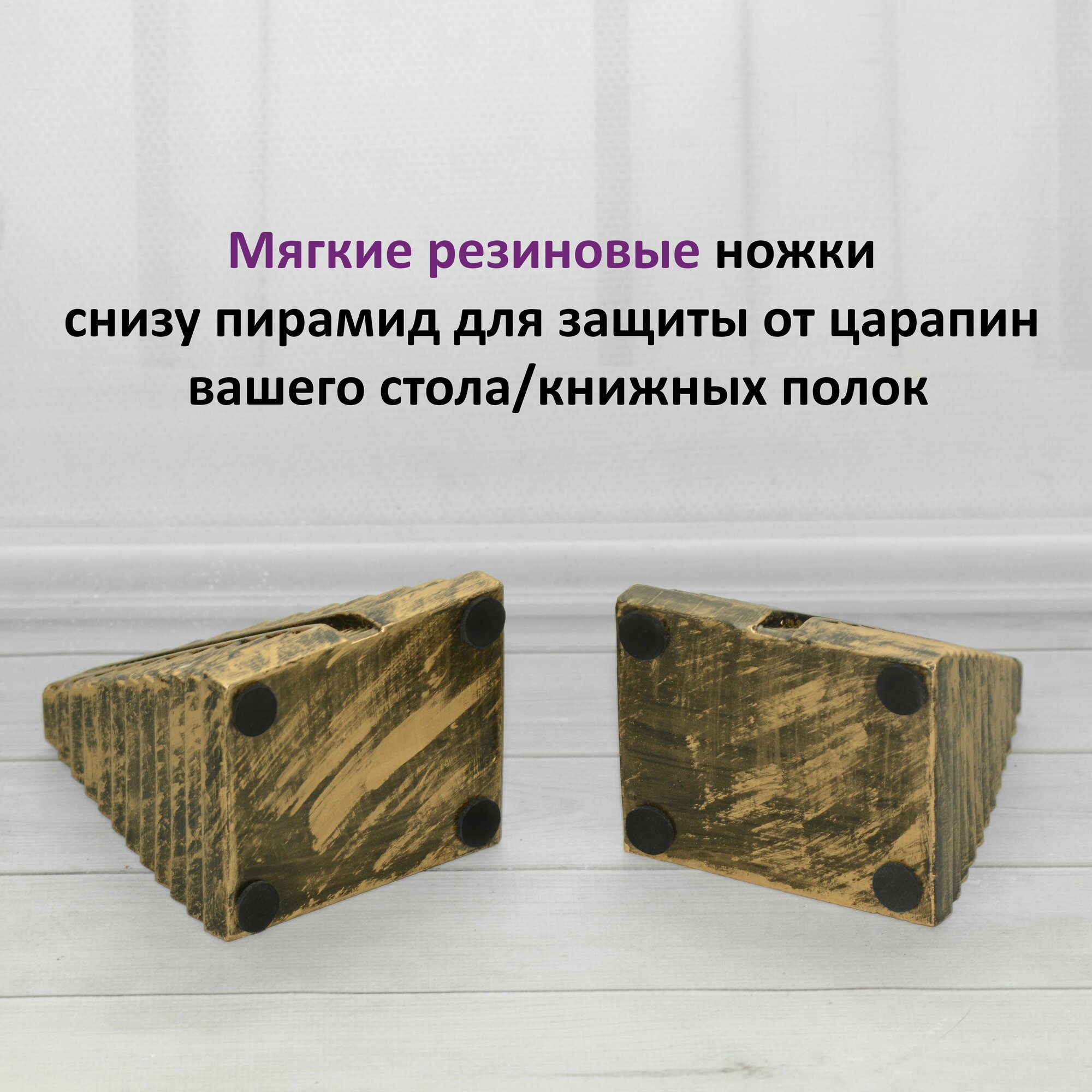 Ограничители для книг Пирамиды, 2шт // Держатели-подставки на полку // Цвет Черное золото интересное: