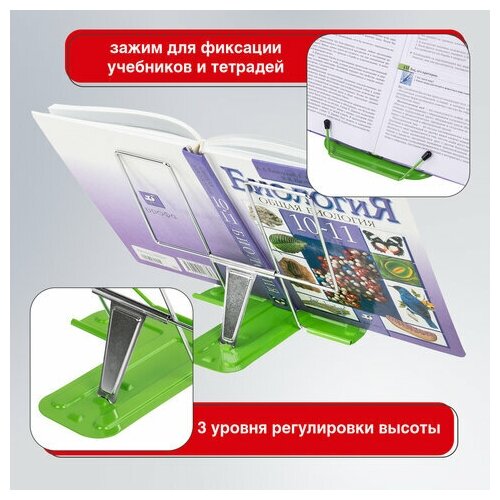 Комплект 2 шт, Подставка для книг и учебников металлическая, зеленая, BRAUBERG LINE, 237967 интересное: