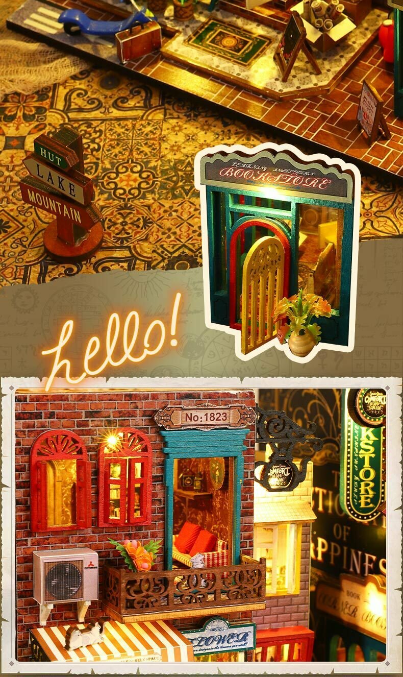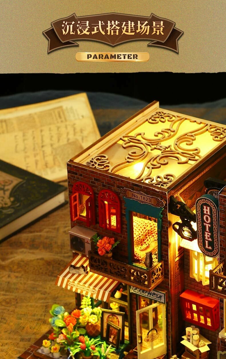 Подставка для книг Jiate diy cottage Scarbro, трехмерная, ручная работа, с лампой, изысканное украшение интересное: