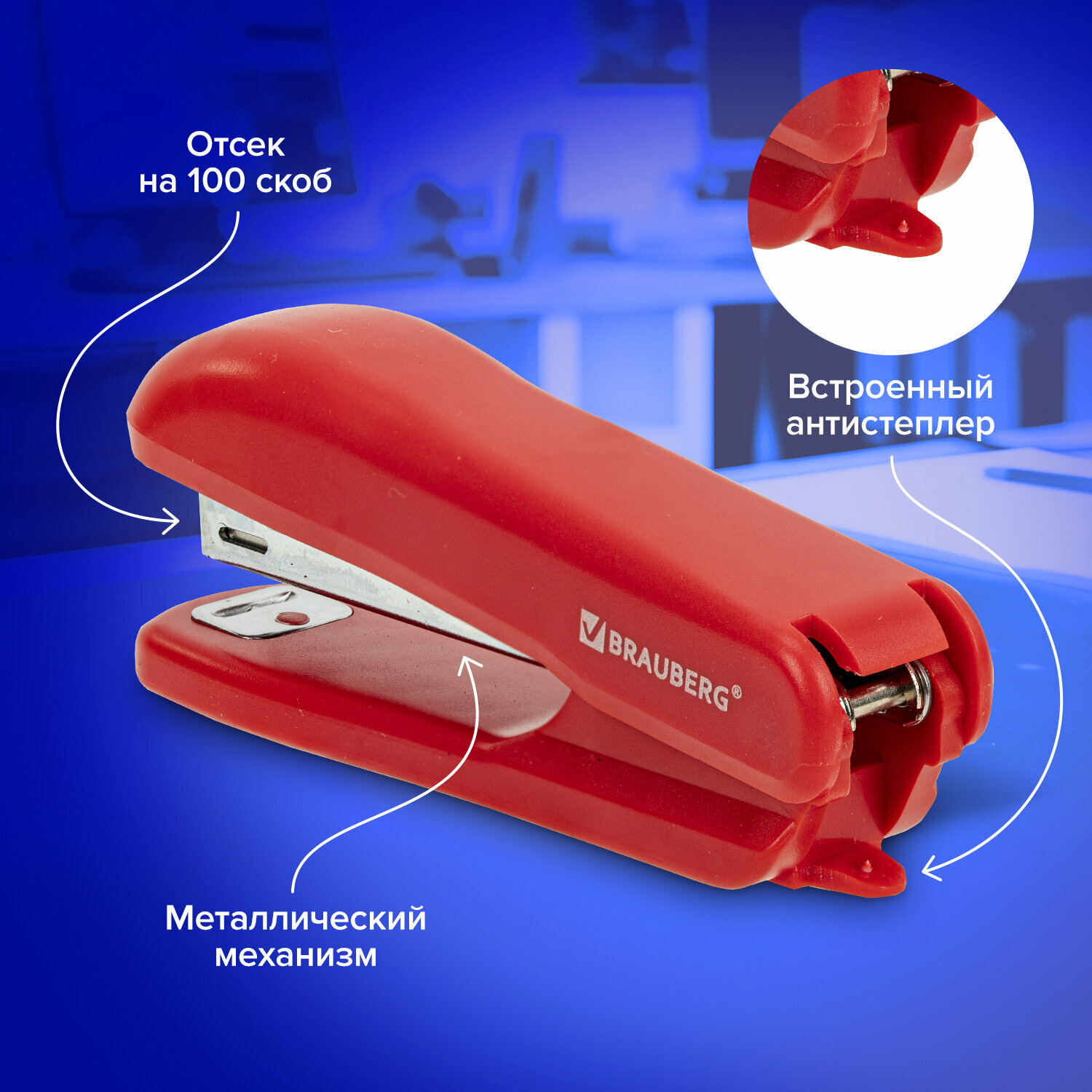 Степлер канцелярский для бумаги, скобы №10 Brauberg "SX-19", с антистеплером, до 12 листов, красный, 228589 интересное: