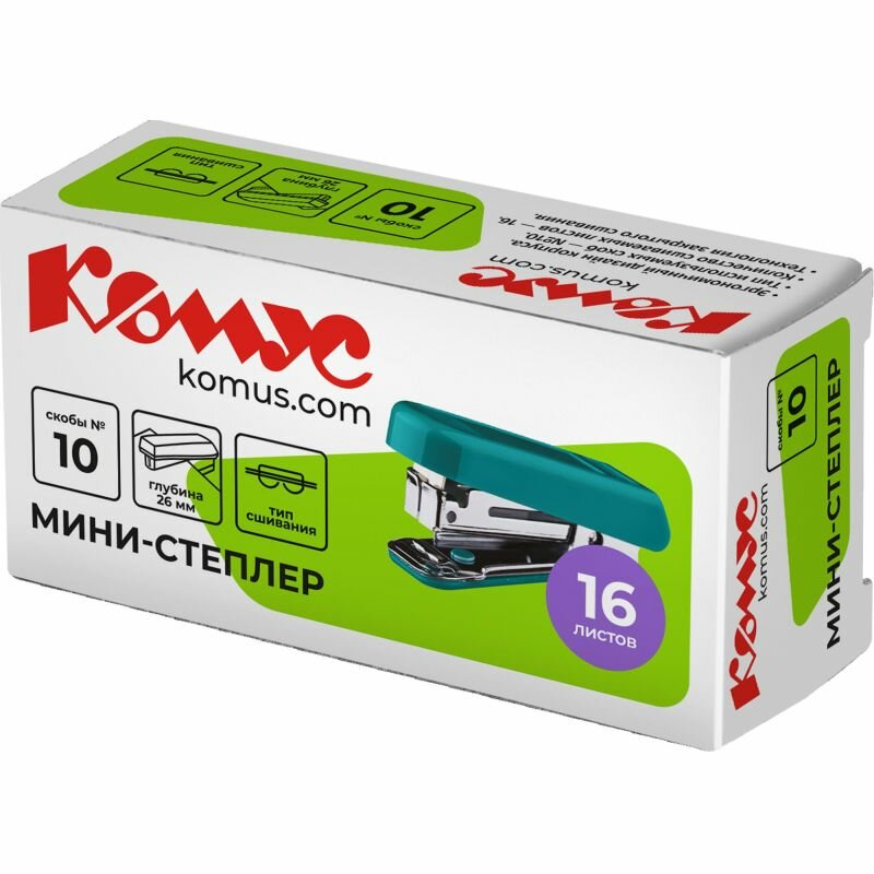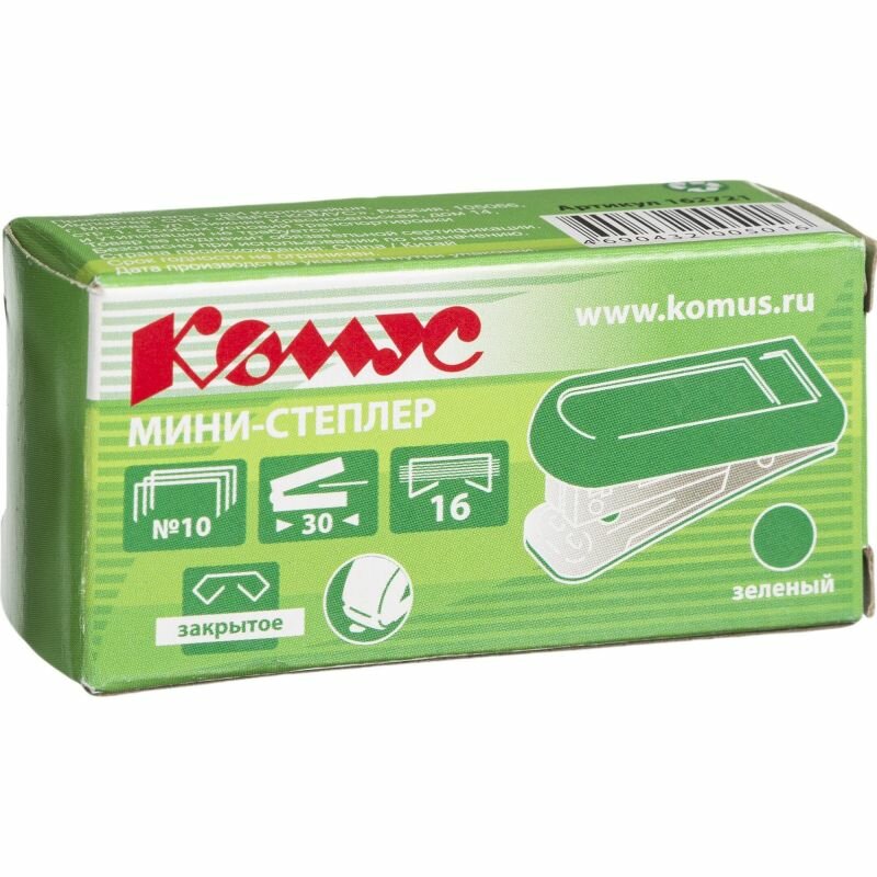 Степлер-мини комус (N10) до 16 лист. зелёный антистеп интересное: