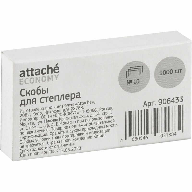 Купить Скобы для степлера канцелярского Attache Economy, №10, 1000 штук, 10 упаковок