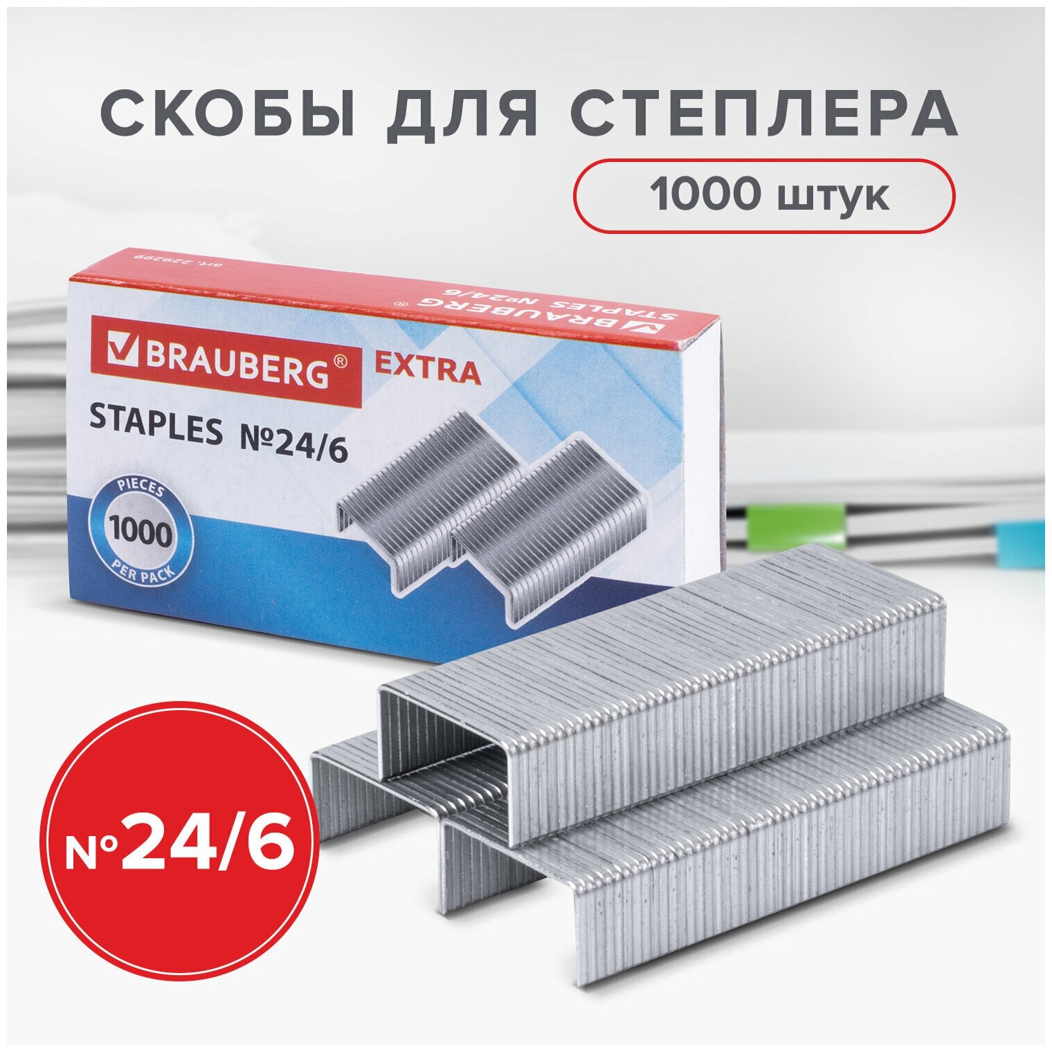 Скобы для степлера цинковое покрытие №24/6, 1000 штук, BRAUBERG "EXTRA", до 30 листов, 229299 интересное: