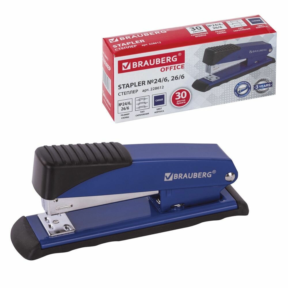 Купить Степлер №24/6, 26/6 металлический BRAUBERG "Office", до 30 листов, синий