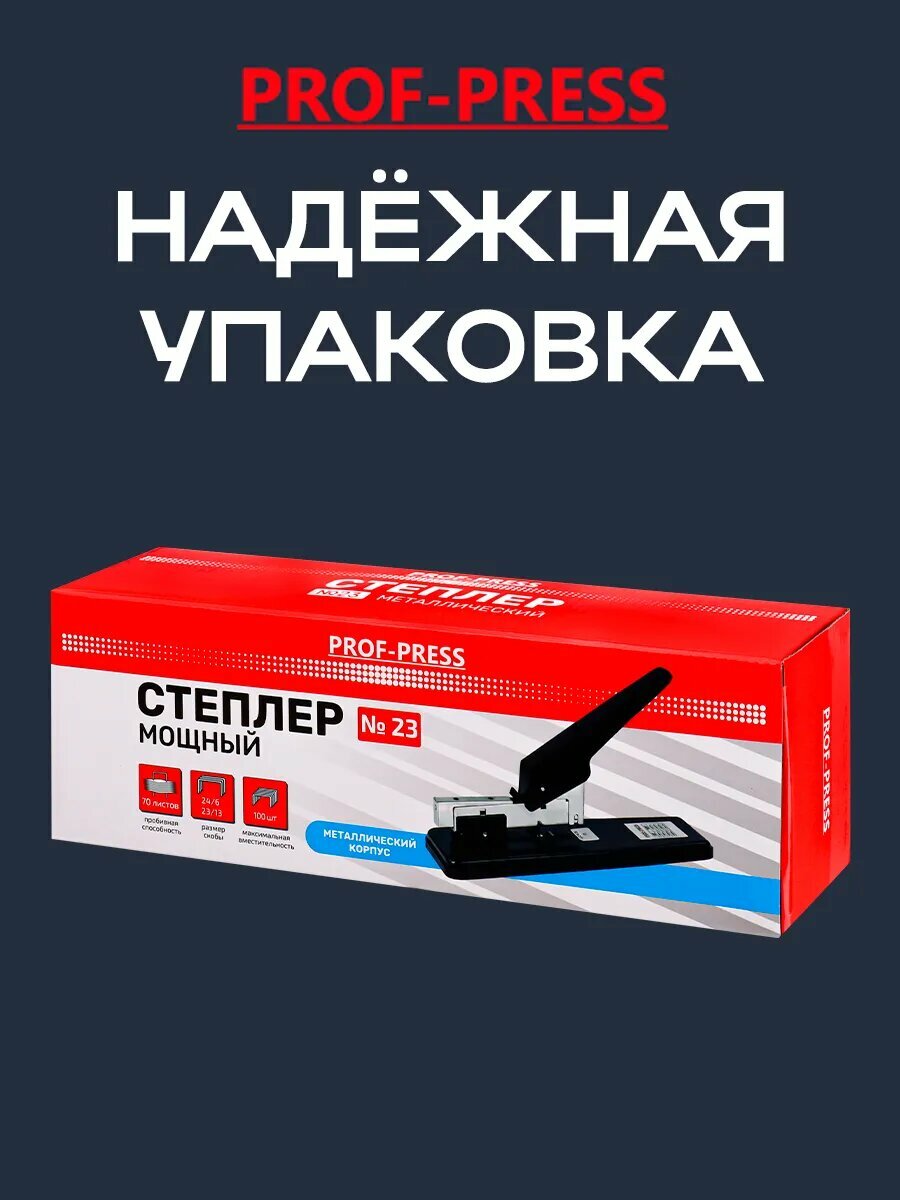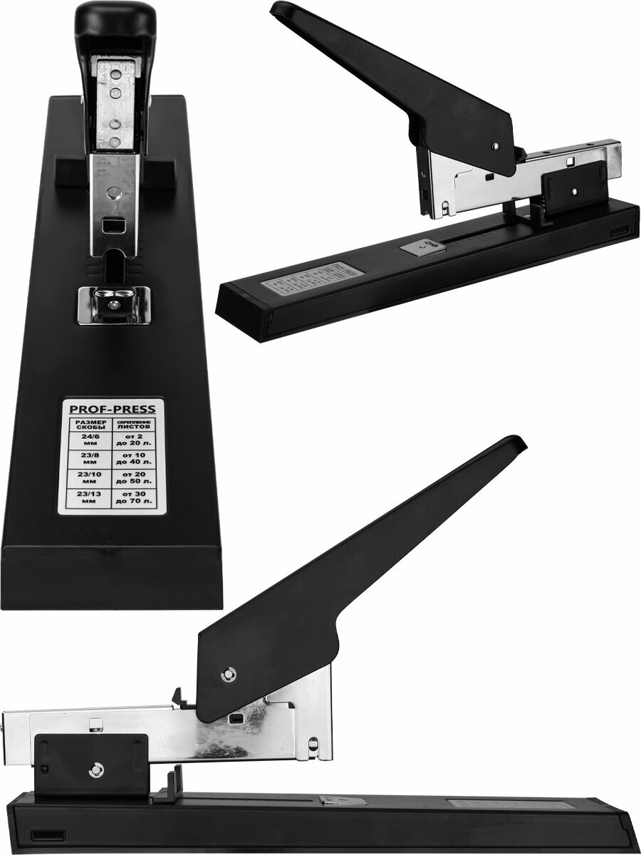 Степлер мощный Prof-Press, 70 пробиваемых листов, металл, черный интересное: