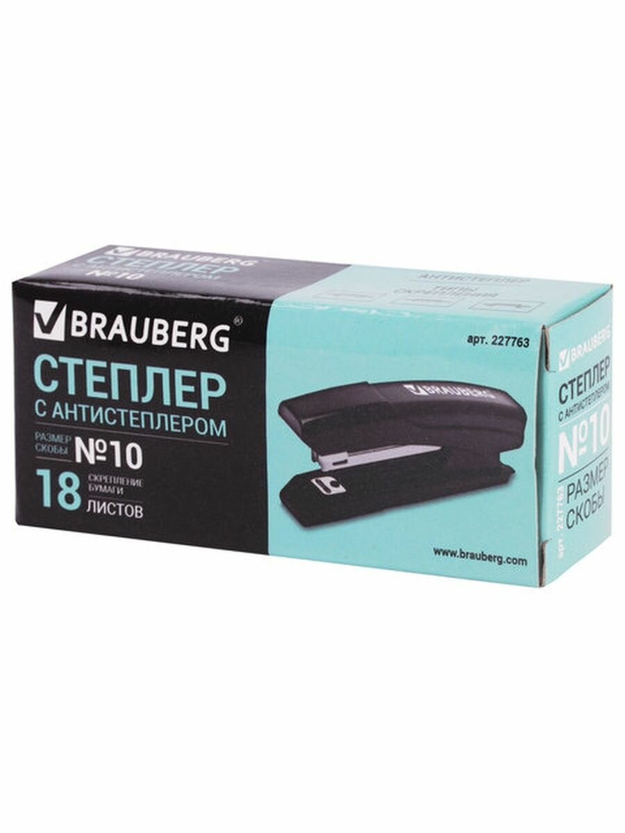 Купить Степлер №10 BRAUBERG "Black Jack", до 18 листов, антистеплер, черный, 227763