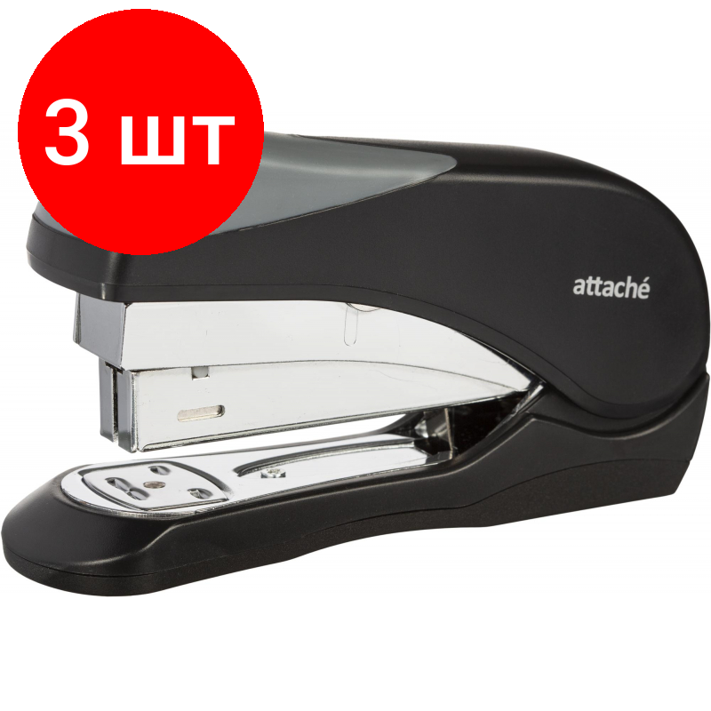 Комплект 3 штук, Степлер Attache Expert (№24/6.26/6) до 20 лис, энергосберегающий, черн/сер интересное: