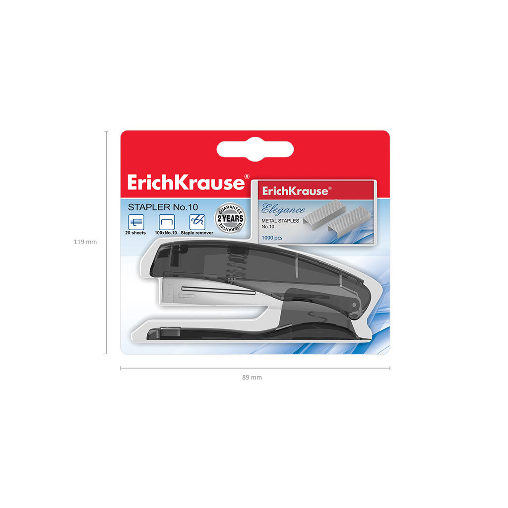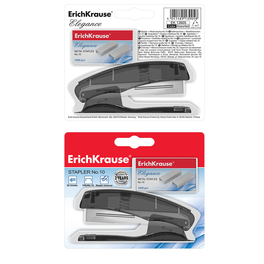 Степлер №10 в комплекте со скобами ErichKrause Elegance до 20 листов, ассорти (в пластиковом блистере по 1 шт.) интересное: