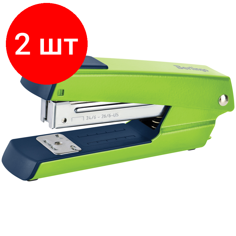 Купить Комплект 2 шт, Степлер №24/6, 26/6 Berlingo "Power TX" до 30л, металлический корпус, зеленый